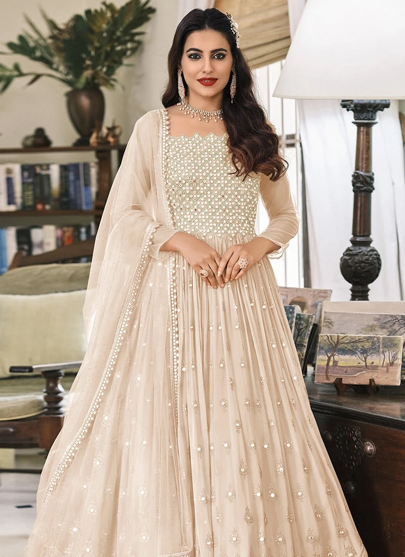 Beige Georgette Embroidered Designer Anarkali Suit Festive Wear