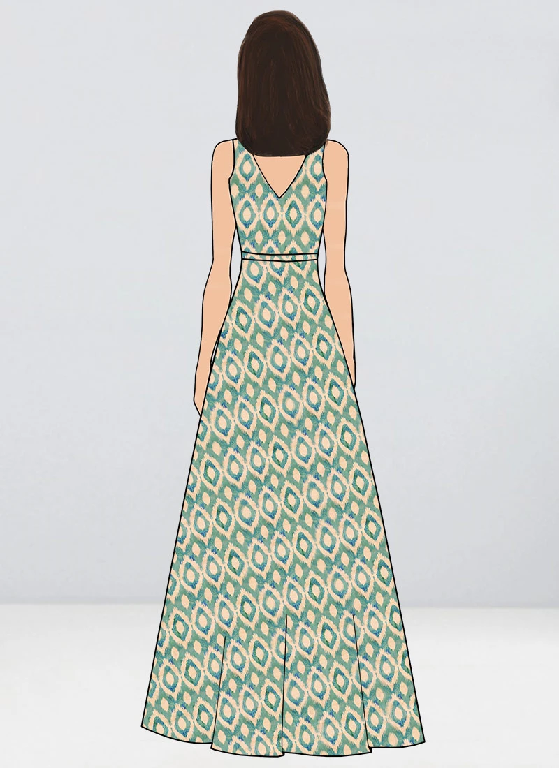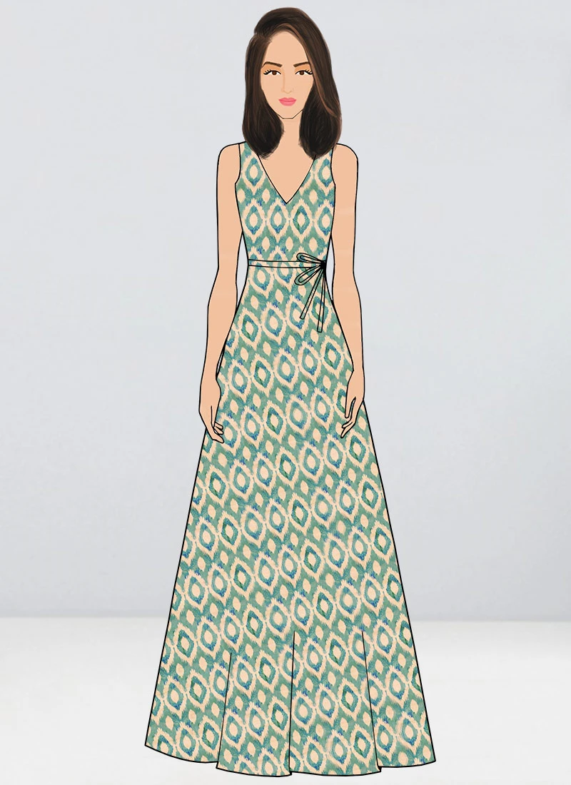 Beige N Sea Green Printed Floor Length Gown Party Wear