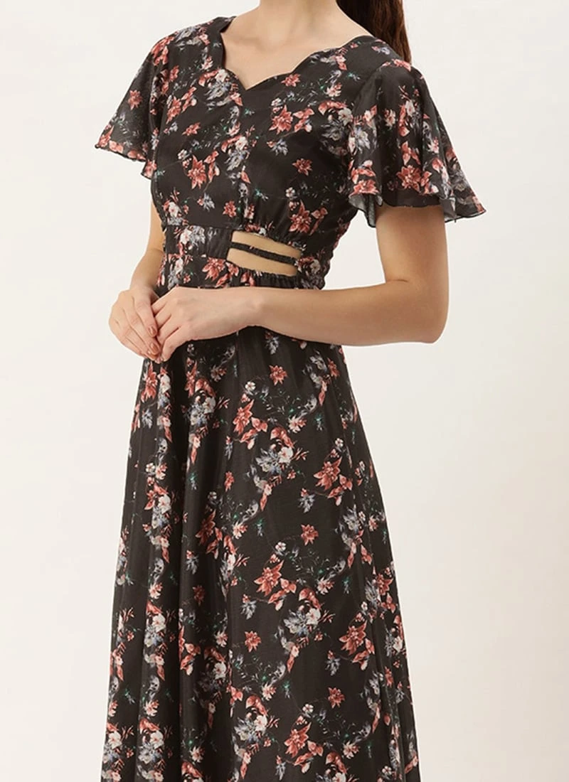 Black Chinon Side Cut Out Dress After Six Wear -ZariGrace Shop Black Chinon Side Cut Out Dress DRBS02308941 rrc1