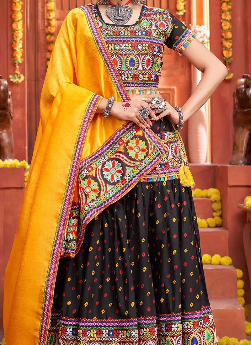 Black Cotton Embroidery With Mirror Work Chaniya Choli Festive Wear