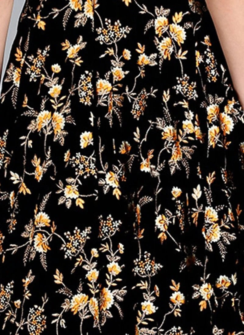 Black Embroidered Velvet Skirt -ZariGrace Shop Black Embroidered Velvet Skirt WBBS02306482 b