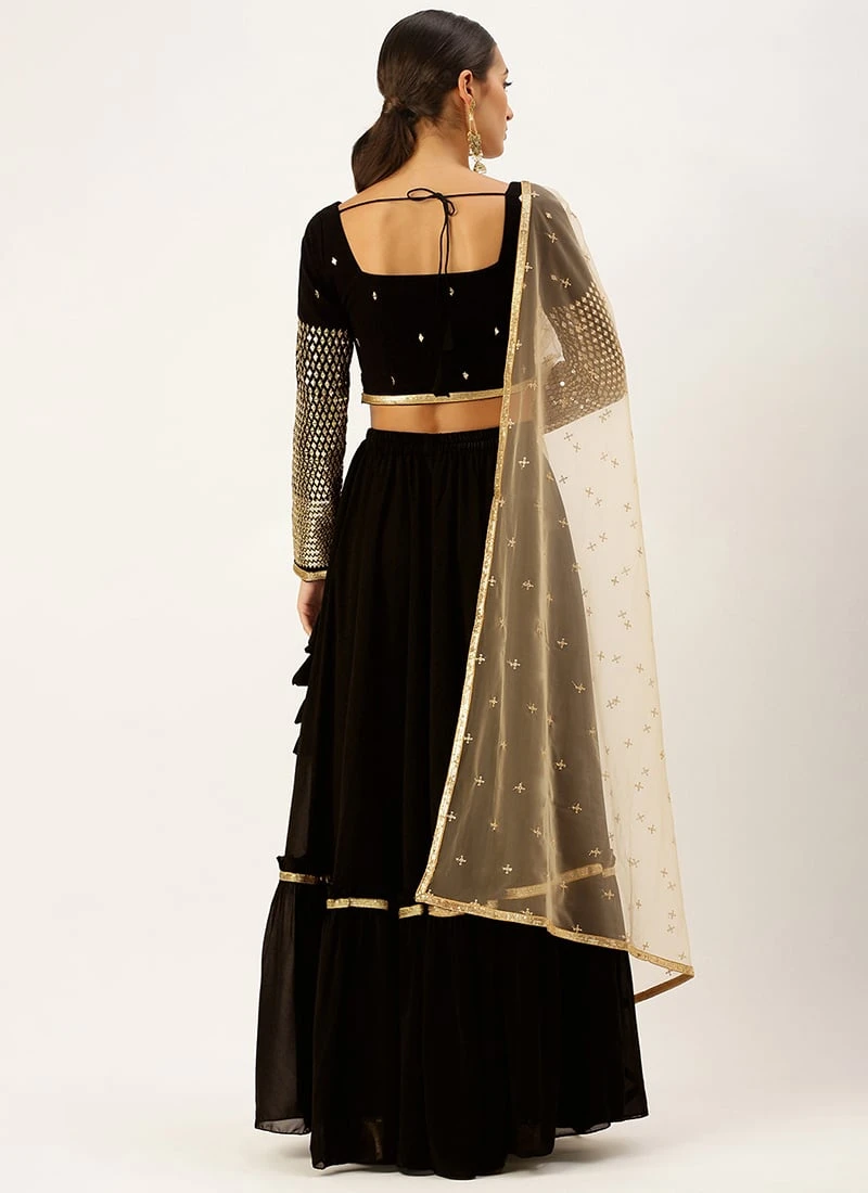 Black Georgette Embroidered Gathered Lehenga Party Wear