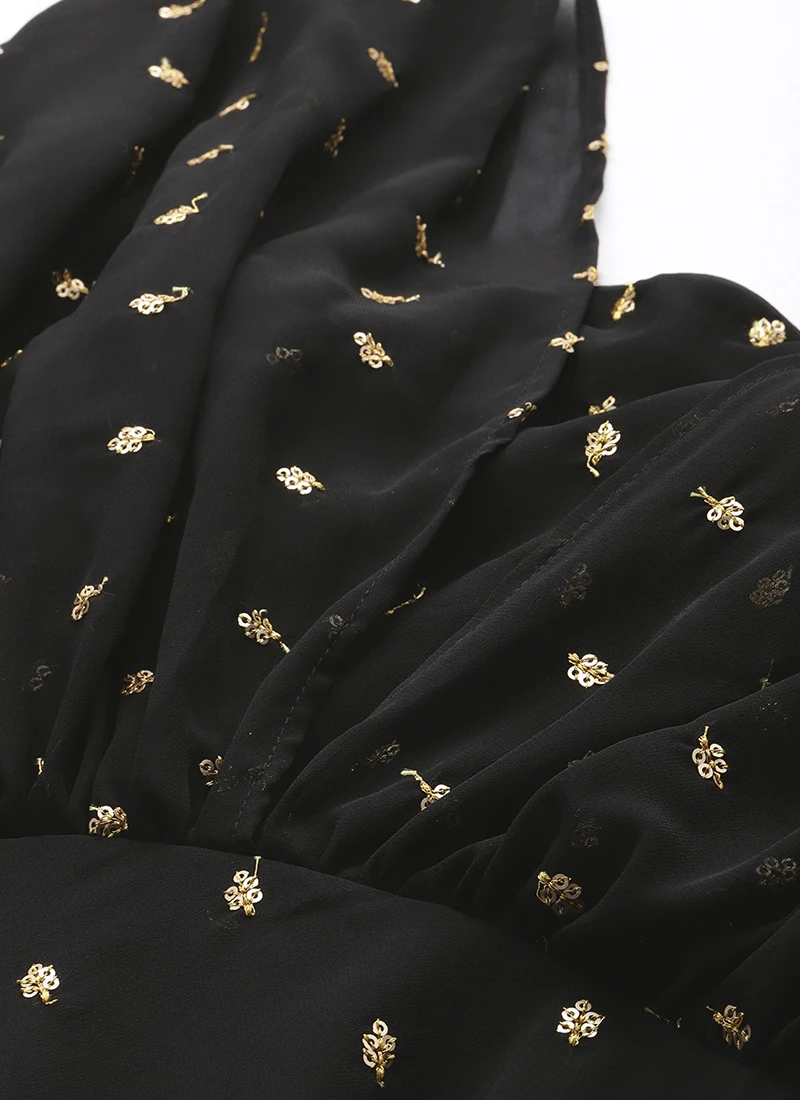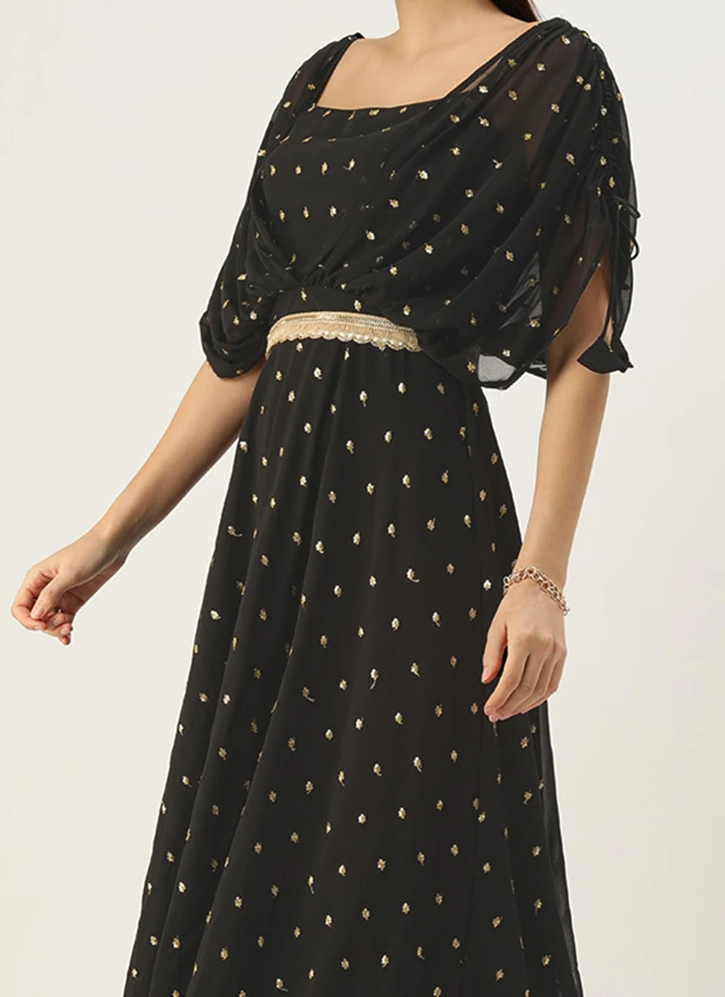 Black Georgette Embroidered Overlap Draped Gown Wedding Wear