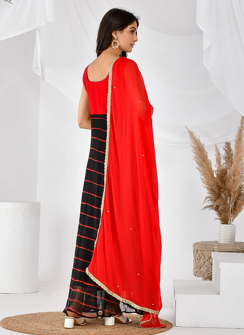 Grey N Green Silk Zari Embroidery Work Half N Half Saree Party Wear