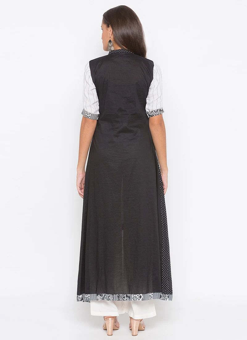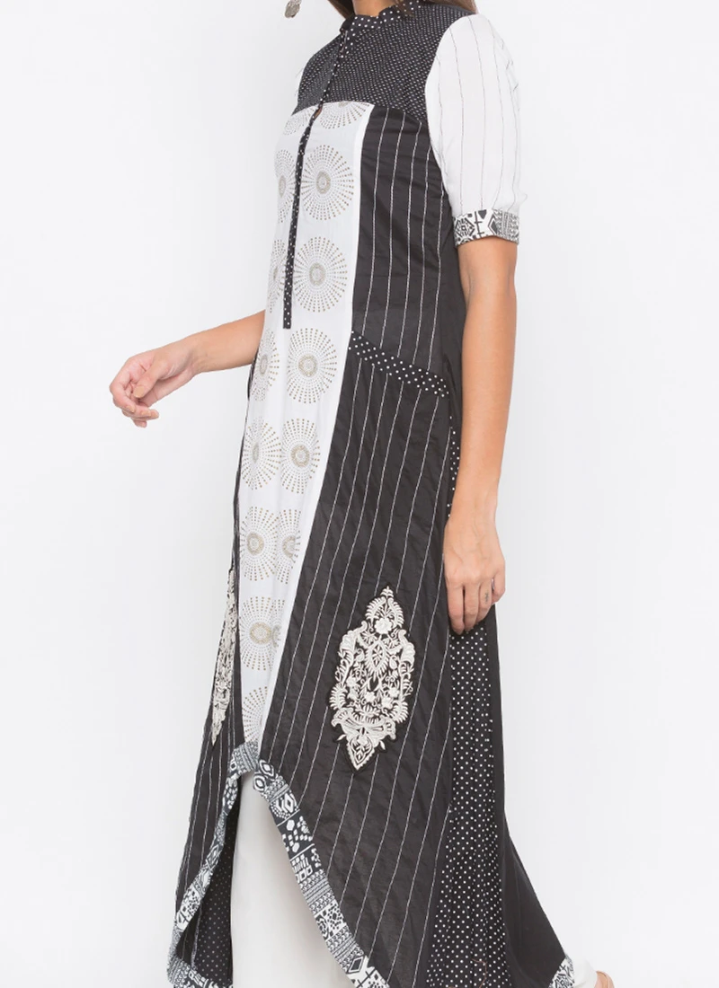 Black N White Cotton Embroidered Kurta Palazzo Set After Six Wear