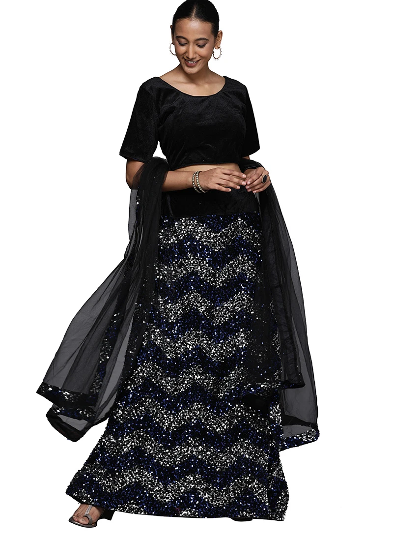 Comes with semi -stitched lehenga, un stitched choli and dupatta fabric. To have it stitched, please select the custom tailoring options. Lehenga with elaborate patterns and colors are used for photo-shoot. Color and pattern of the lehenga might not be as shown in the image.