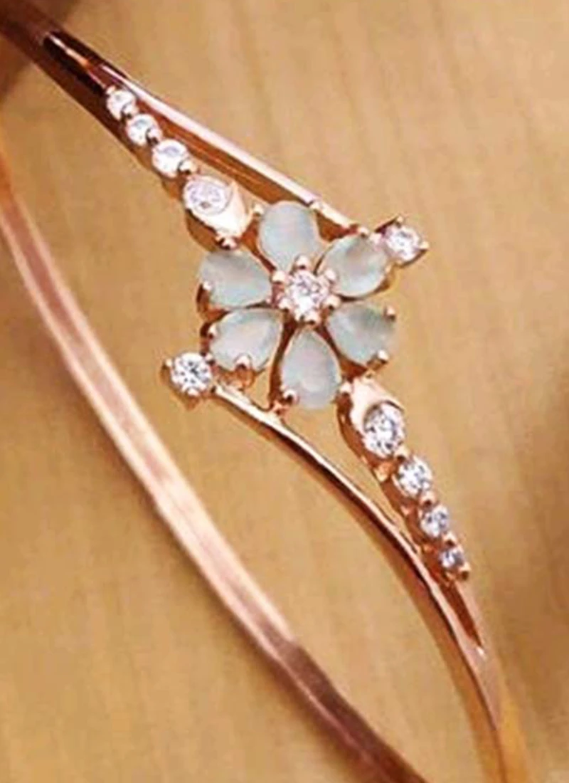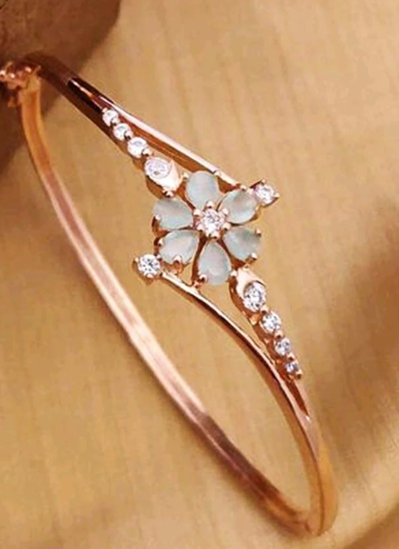 Designer gold polish openable Bracelet with adjustable crafted with blingling white stones. This Bracelet will perfectly suits for party wear.
