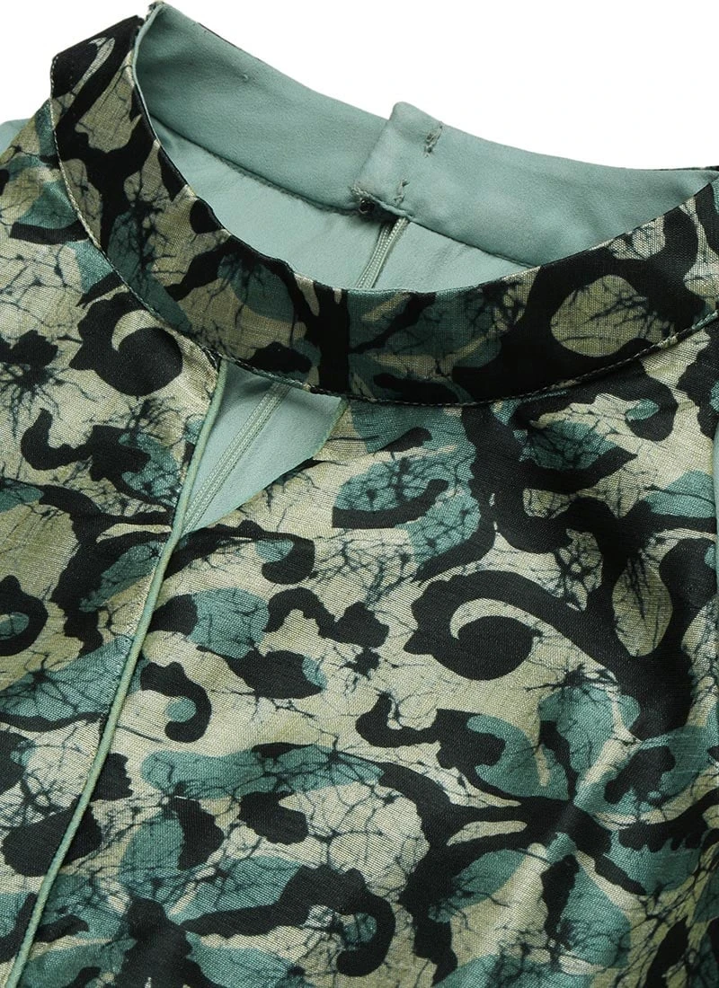Green Chanderi Printed Floral Maxi Dress Festive Wear
