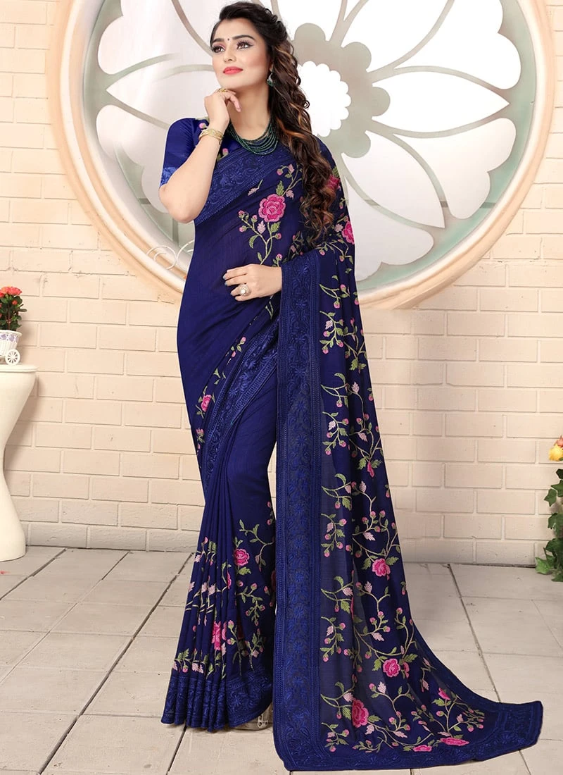 Comes with unstitched blouse fabric. To have the blouse stitched, please select the custom tailoring options. Blouses with elaborate patterns and colors are used for photo-shoot. Color and pattern of the blouse might not be as shown in the image.