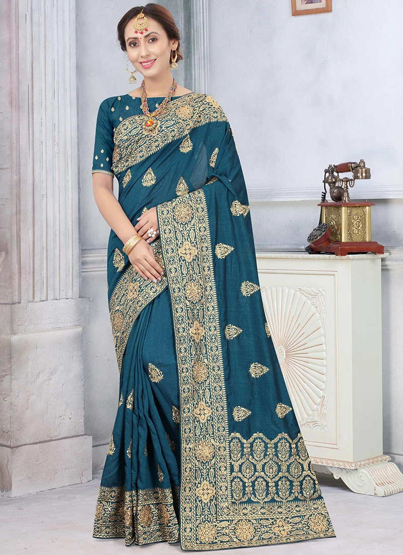 Comes with unstitched blouse fabric. To have the blouse stitched, please select the custom tailoring options. Blouses with elaborate patterns and colors are used for photo-shoot. Color and pattern of the blouse might not be as shown in the image.
