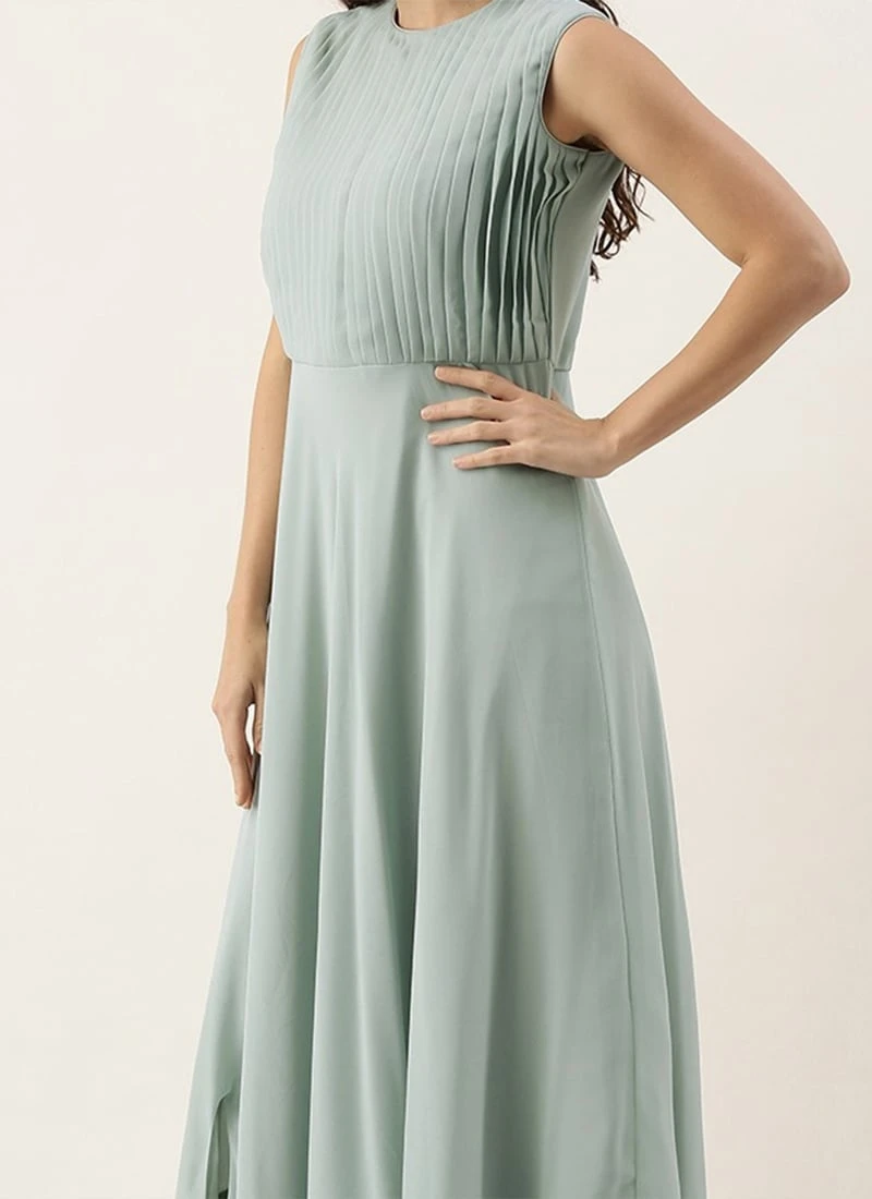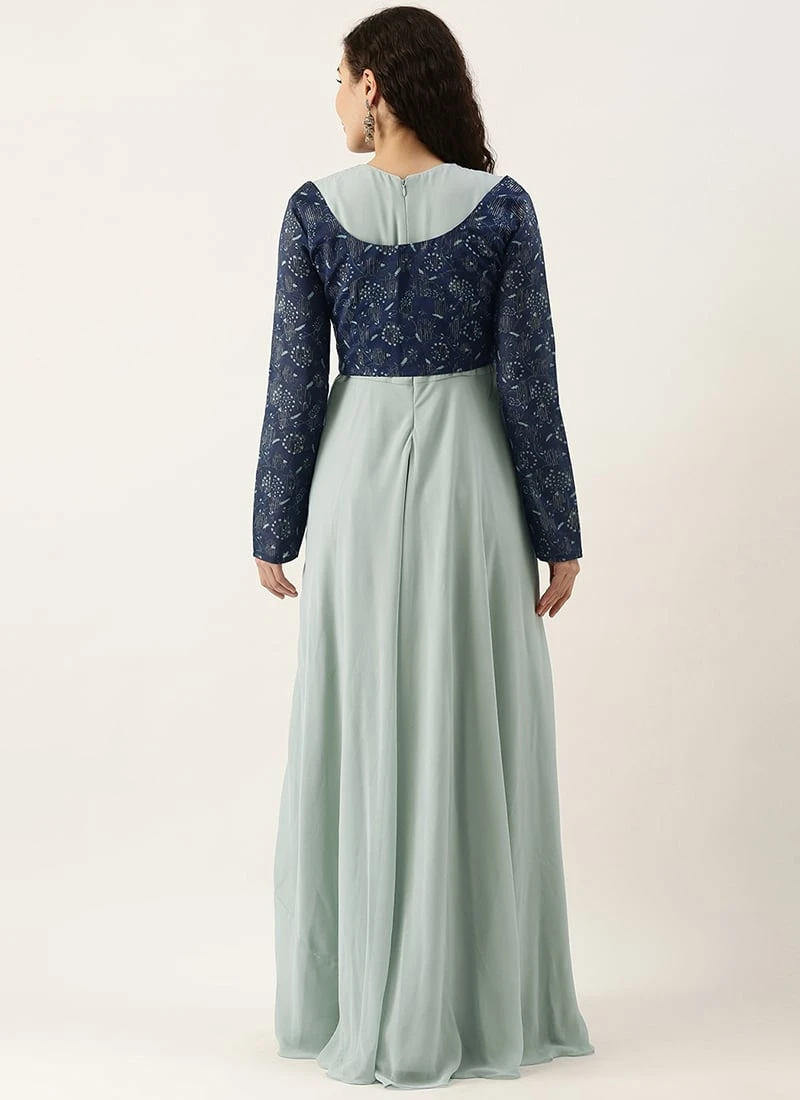 Blue Digital Printed Jacket Slit Style Dress Festive Wear