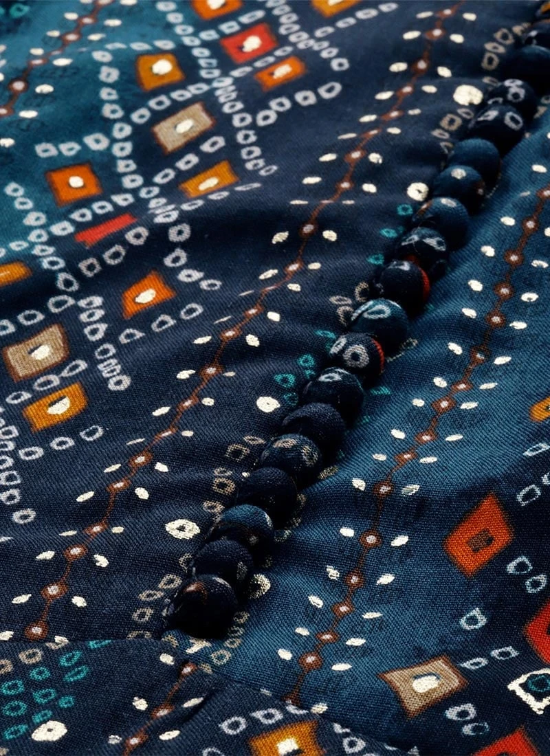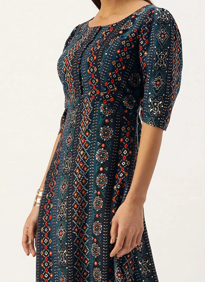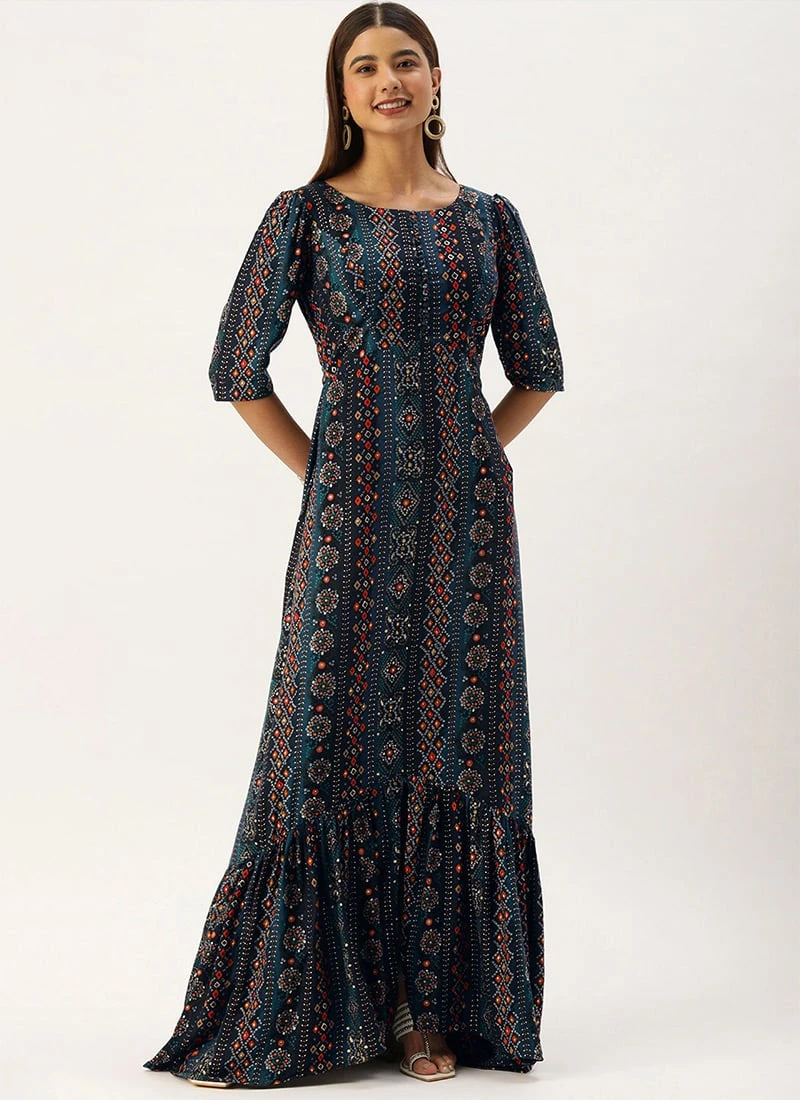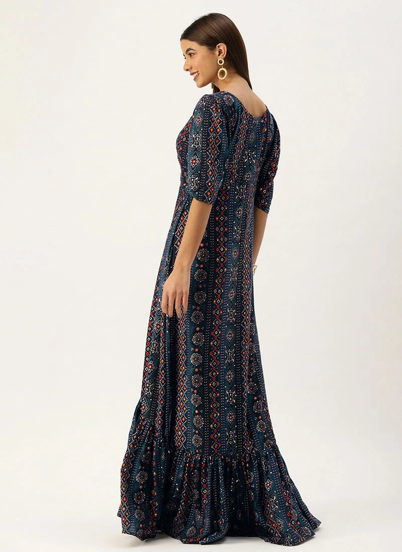 Blue Digital Printed Maxi Dress Party Wear