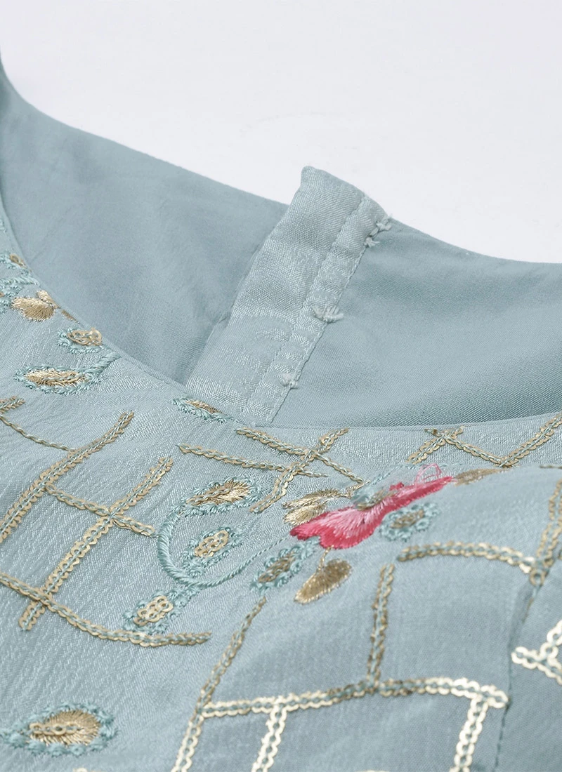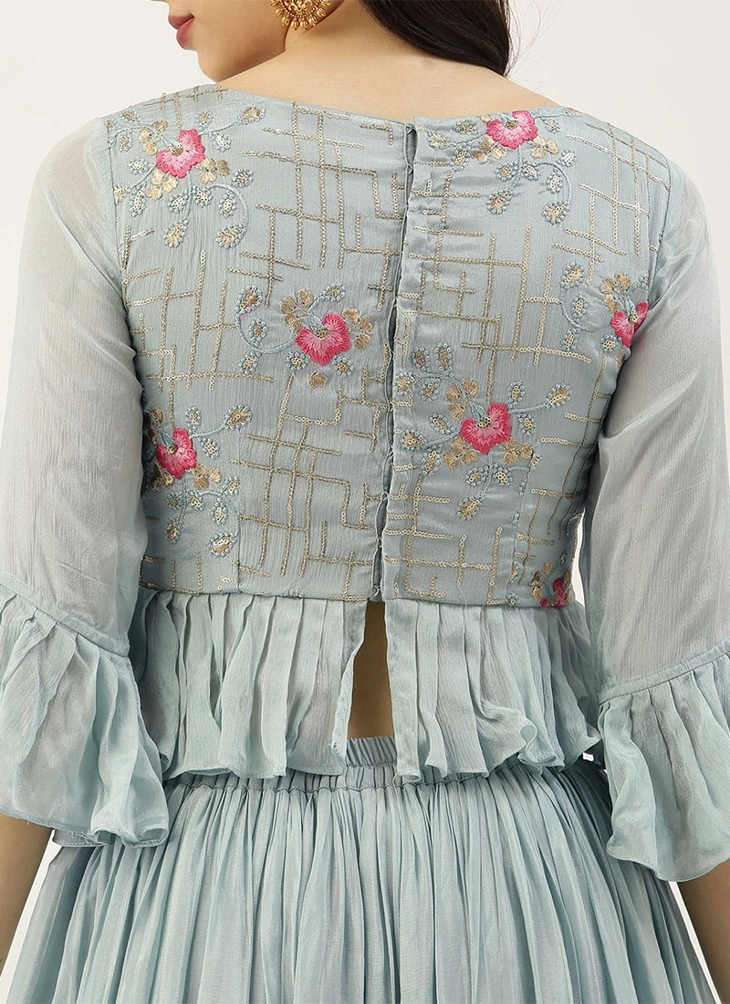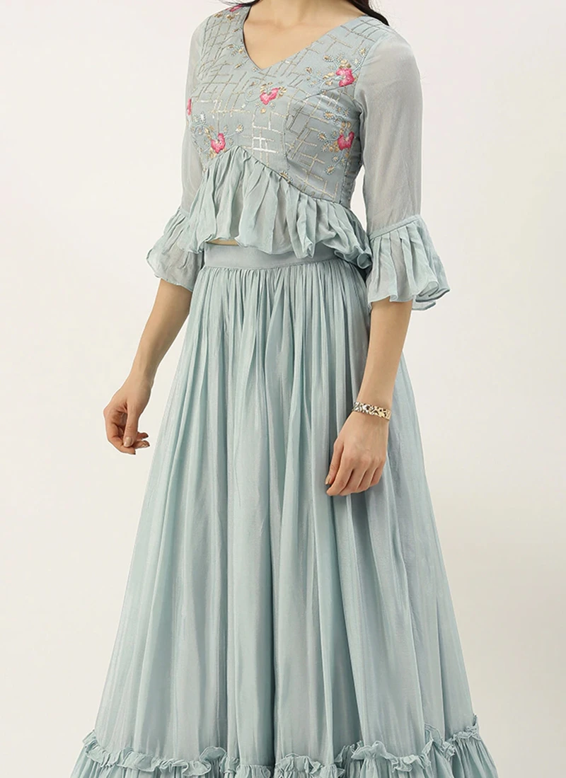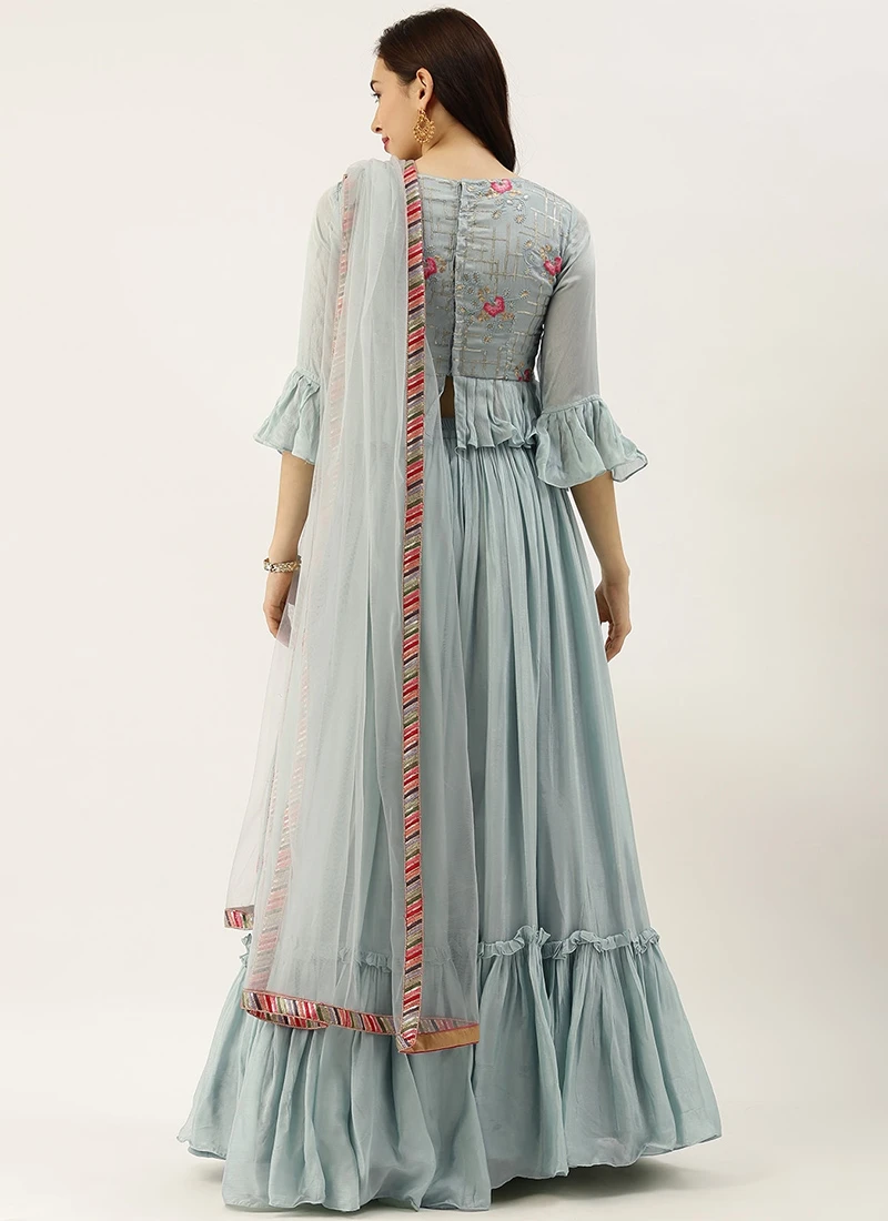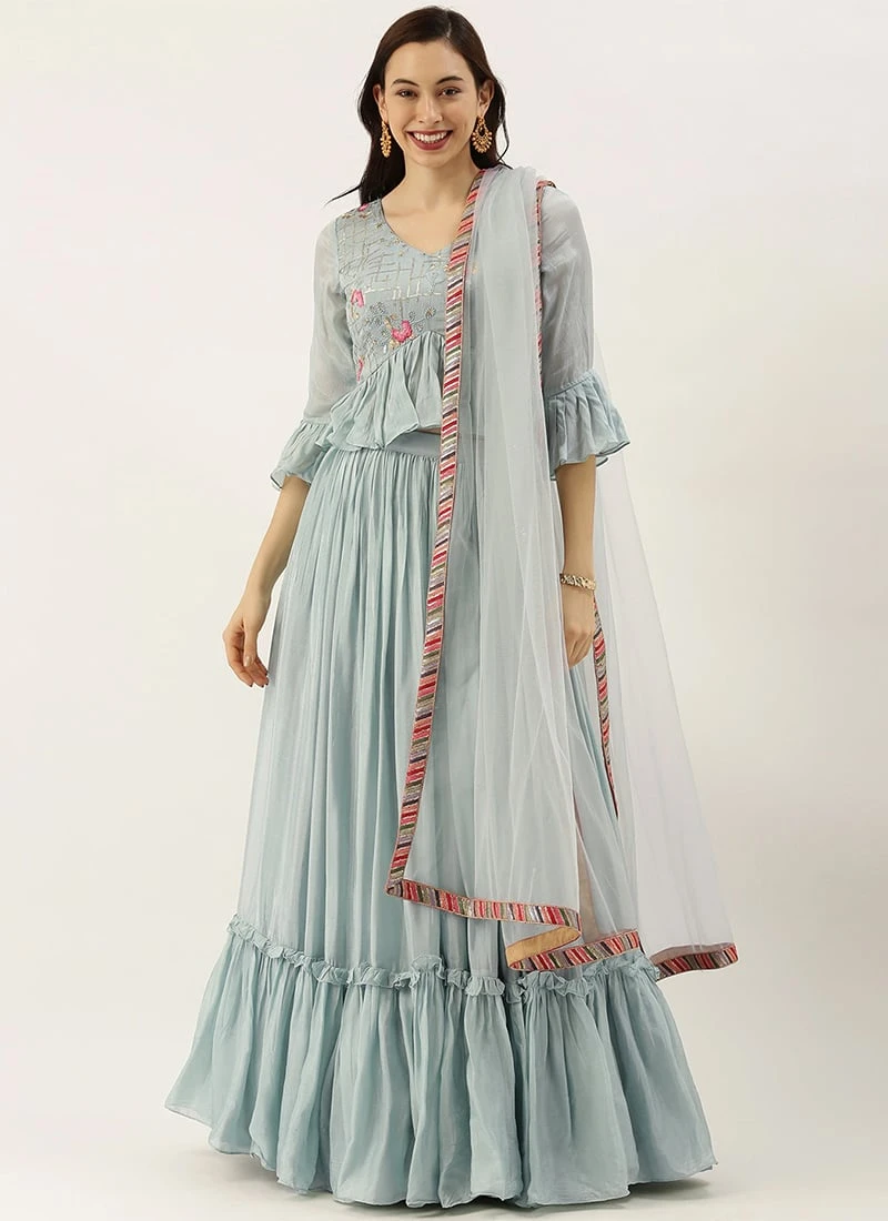 Blue Embroidered Tired Lehenga Set Festive Wear