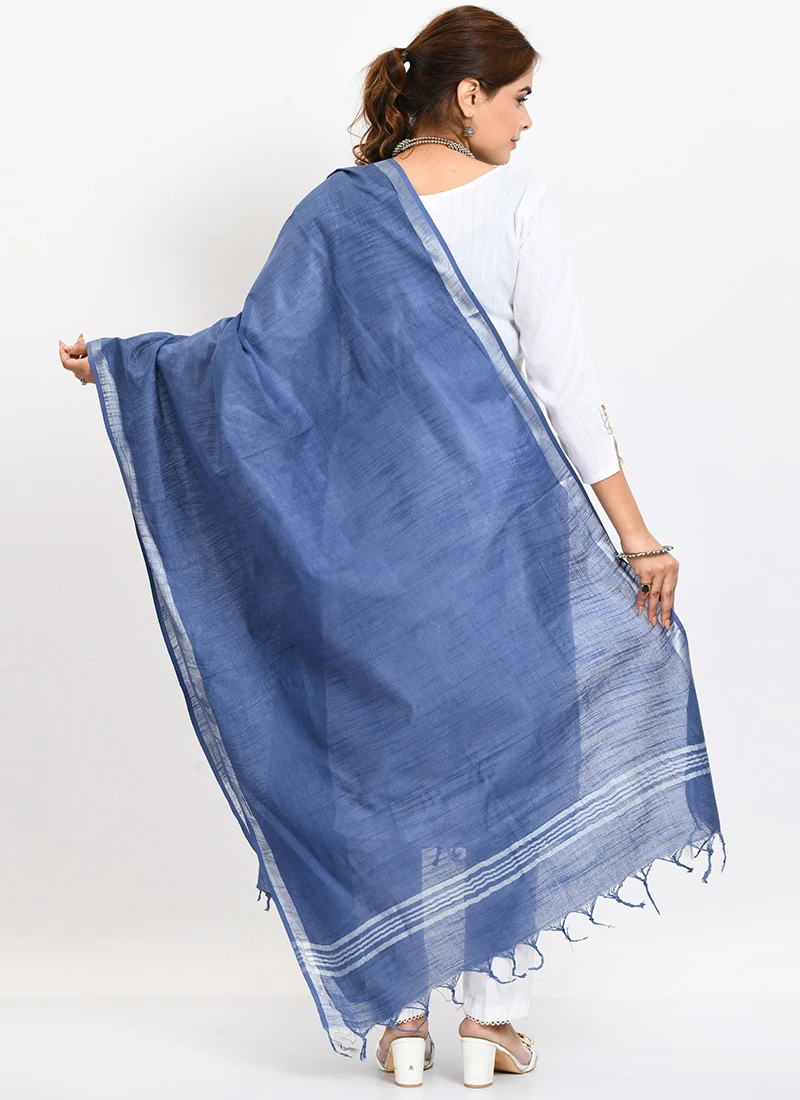 Blue Linen Cotton Dupatta Work Wear -ZariGrace Shop blue linen cotton dupatta dpdmimfd171 u