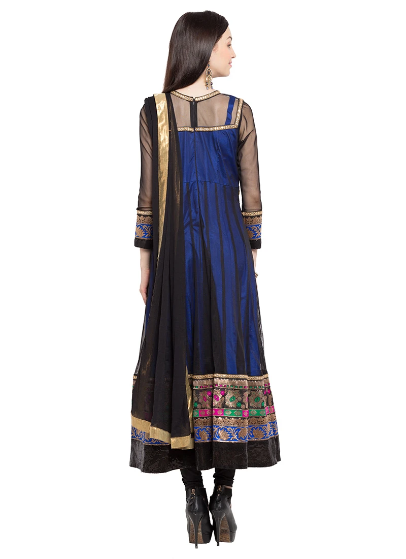 Grey N Green Silk Zari Embroidery Work Half N Half Saree Party Wear