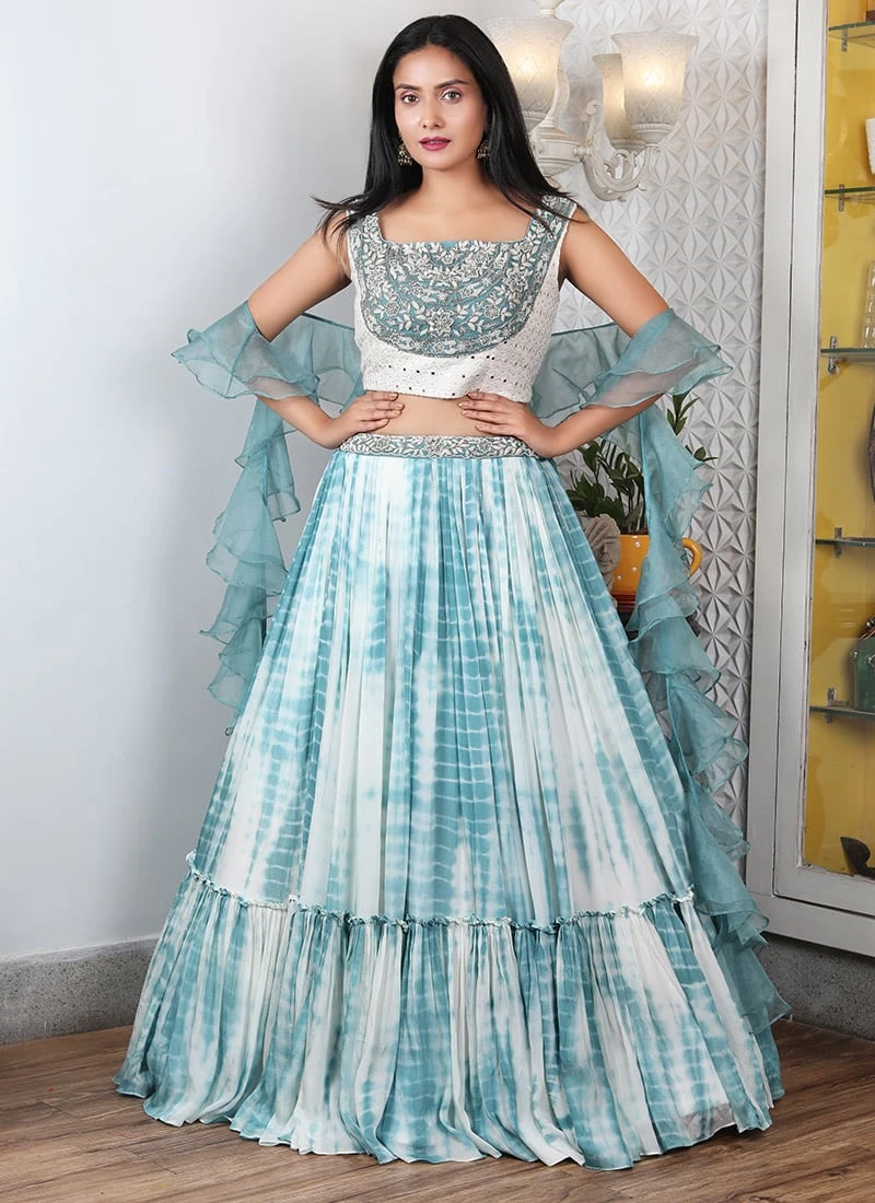 In the world of fashion certain garments effortlessly capture the essence of timeless elegance blending tradition and contemporary style into a harmonious ensemble. The Blue Pure Silk Lehenga is one such masterpiece a testimony to the enduring allure of Indian fashion. This resplendent lehenga designed with meticulous craftsmanship and artistry is created to make every woman feel like royalty radiating an aura of regal grace and beauty. Crafted from pure silk a fabric renowned for its luxurious sheen and soft flowing texture the Blue Pure Silk Lehenga provides a tactile experience that is as comfortable as it is opulent. The choice of a serene blue hue adds a touch of sophistication and grandeur to the attire. Blue with its associations of calmness depth and versatility is the perfect choice for special occasions symbolizing a sense of timeless beauty and poise. The silhouette of the Blue Pure Silk Lehenga seamlessly merges traditional and modern design elements. It features an Aline cut with a fitted waist that accentuates the natural curves of the wearer and a sweeping skirt that adds an ethereal quality to the ensemble. The lehengas design evokes the timeless elegance of Indian fashion creating a versatile and flattering look. What truly distinguishes this lehenga is its intricate handiwork. The skirt blouse and accompanying dupatta are adorned with meticulous handembroidered motifs and embellishments. These designs draw inspiration from traditional Indian patterns featuring delicate florals paisleys and intricate geometric motifs. The craftsmanship and attention to detail are evident in every stitch creating patterns that capture the eye and add a layer of cultural richness to the ensemble. The Blue Pure Silk Lehenga is designed for both style and comfort. The art silk fabric drapes gracefully and feels gentle against the skin allowing for ease of movement. The ensemble typically includes a matching blouse and a sheer lightweight dupatta completing the regal look. To complete the ensemble pair the Blue Pure Silk Lehenga with traditional Indian jewelry such as statement earrings a necklace and bangles. The sheer dupatta can be draped in various styles adding an additional layer of elegance to the attire. Footwear choices can range from heeled sandals for a modern touch to traditional juttis for a hint of tradition. In summary the Blue Pure Silk Lehenga is a symbol of timeless beauty and grace. Its serene blue hue intricate handiwork and comfortable fit make it an ideal choice for women who want to make a statement at special occasions. This lehenga is more than just clothing it is a work of art that reflects the rich heritage and elegance of Indian fashion. When you wear the Blue Pure Silk Lehenga you are not just wearing an outfit you are adorning a piece of history and culture that has been reimagined for the modern woman. It is a tribute to tradition and contemporary design coming together in the world of fashion where every stitch and motif embodies elegance and grandeur.