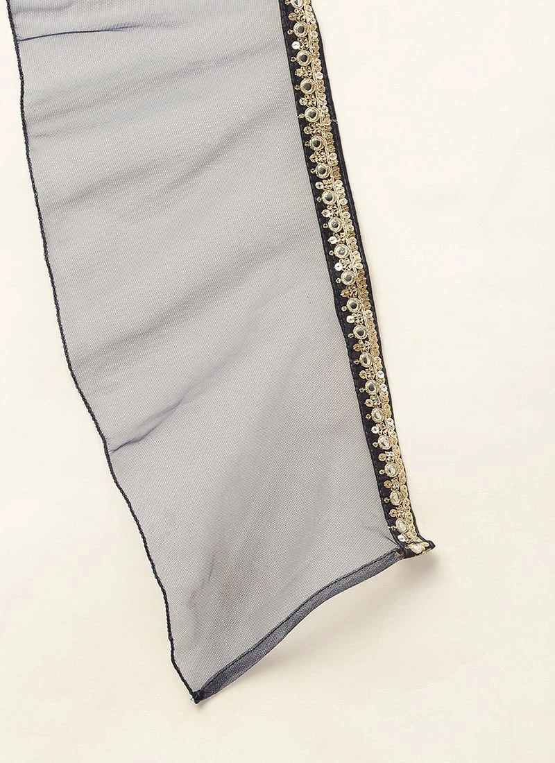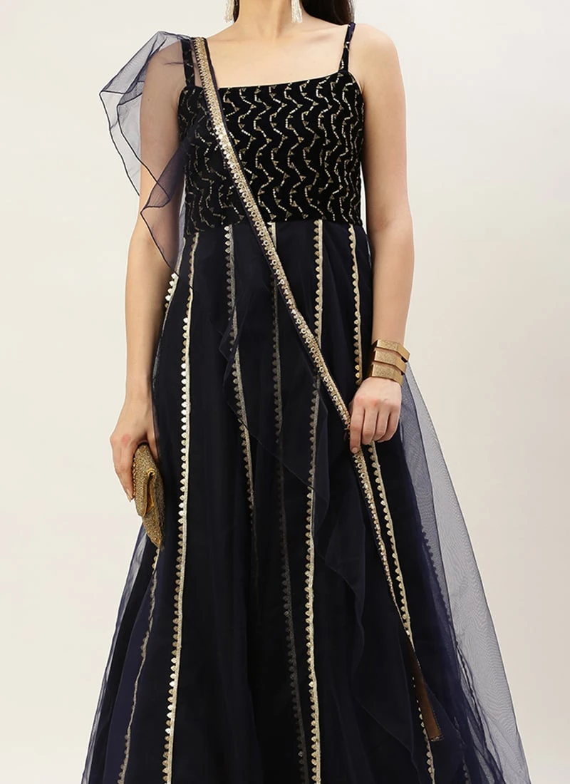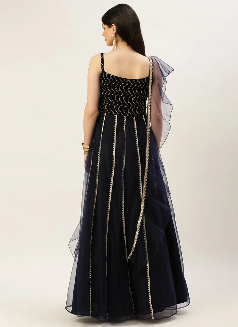 Blue Velvet Embroidered Gown With Dupatta Party Wear