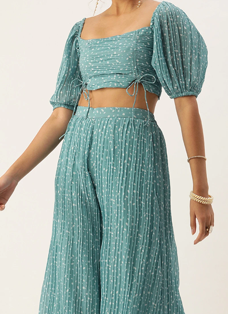 Bottom From Blue N White Printed Pleated Georgette Co-ords After Six Wear