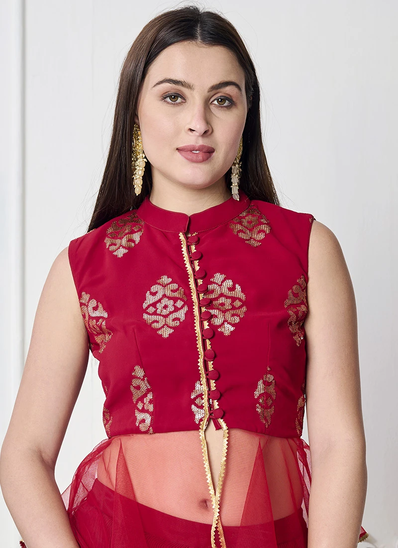 Bottom From Maroon N White Georgette Sequins Palazzo Set After Six Wear