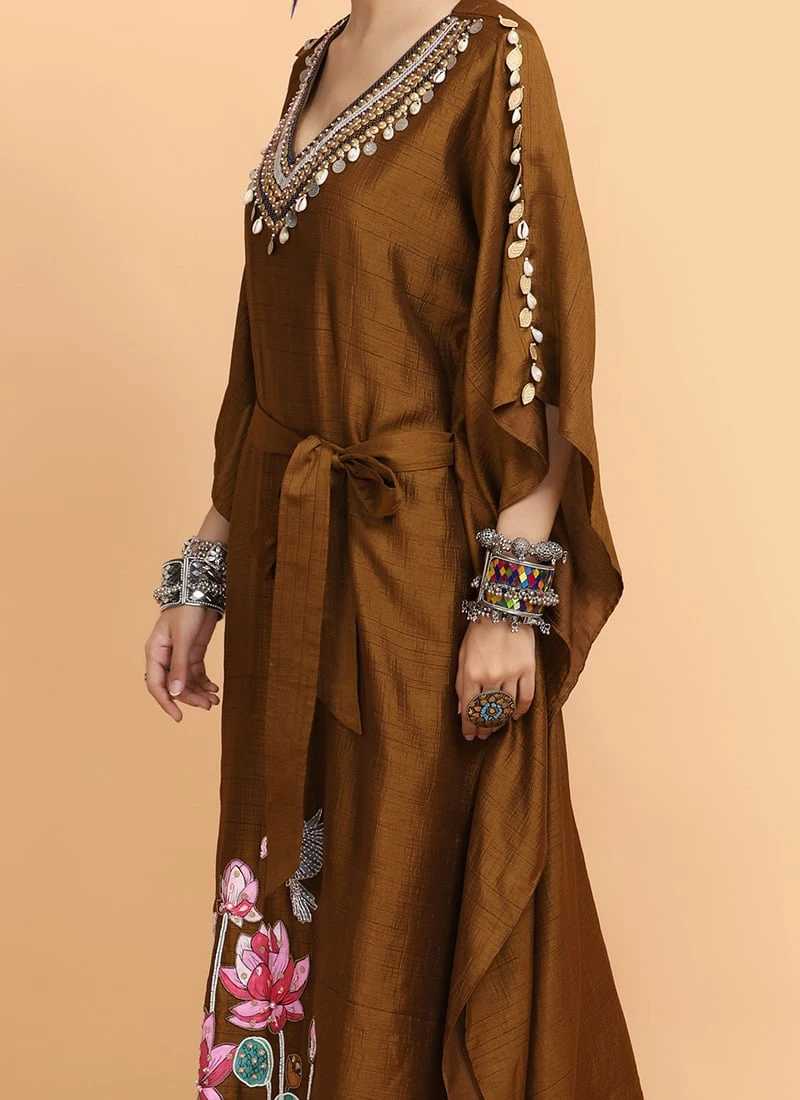 Brown Handpainted Kaftan Set Party Wear
