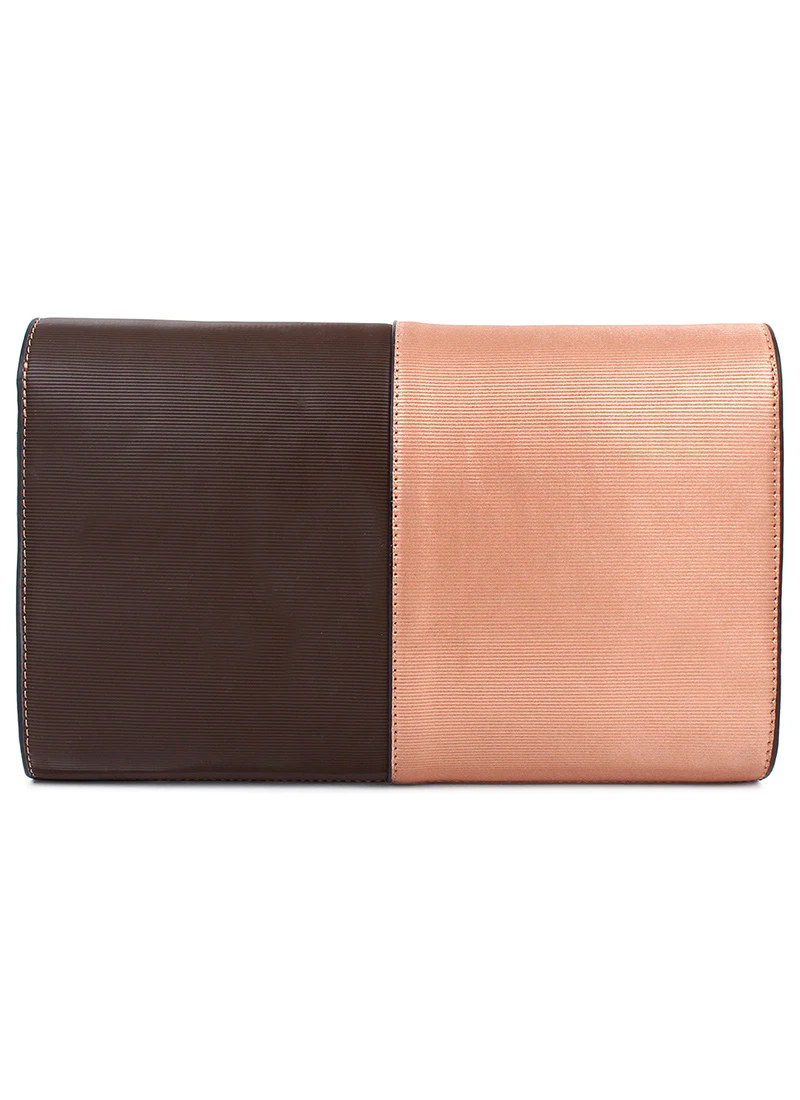 Brown N Pink polyster decorative plain clutch.