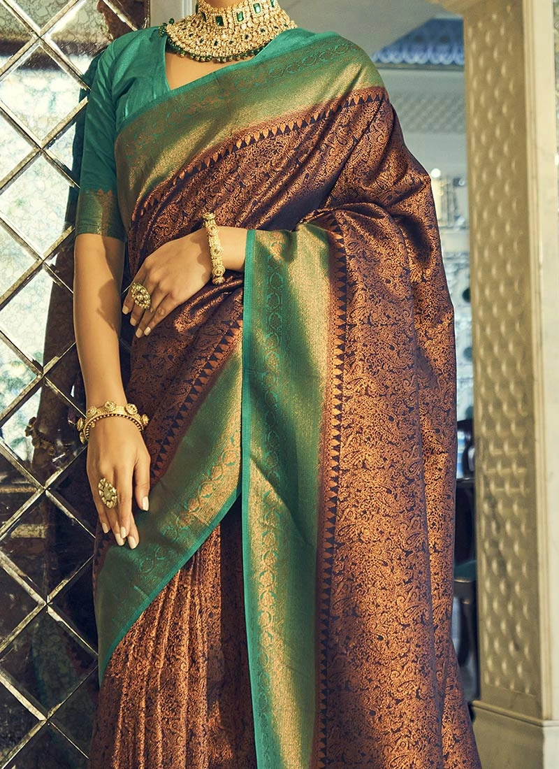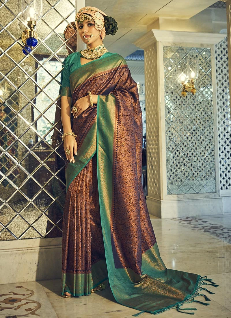 Brown Silk Zari Work Saree Festive Wear