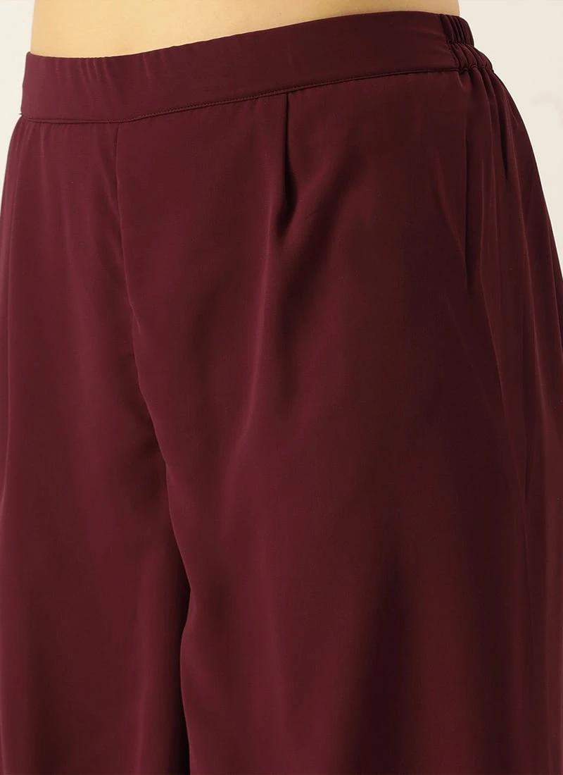 Burgundy Georgette N Yellow Printed Viscose Gown After Six Wear Festive Wear