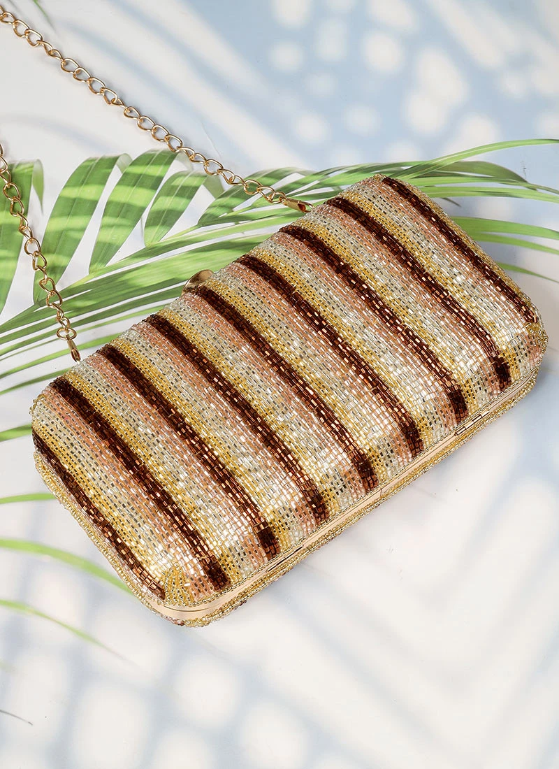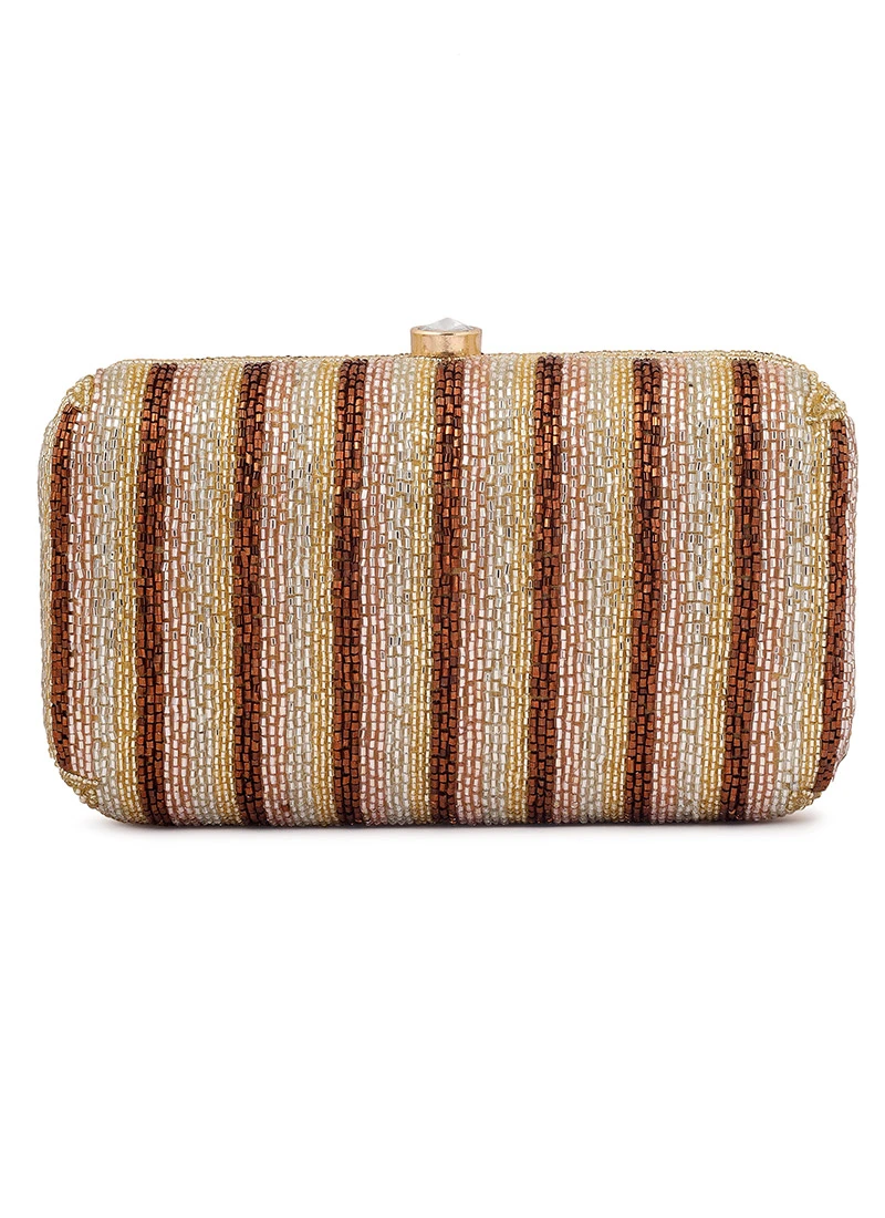 In summary the Copper Art Silk Sequins Clutch is a timeless piece that combines luxurious materials exquisite craftsmanship and thoughtful design. Its elegant copper hue paired with the mesmerizing sequin detailing creates a visually striking accessory that complements various styles and occasions. Carrying this clutch not only enhances your outfit but also reflects your impeccable taste in fashion. Its a musthave addition to any fashionforward individuals collection promising to add a touch of glamour to your every step.