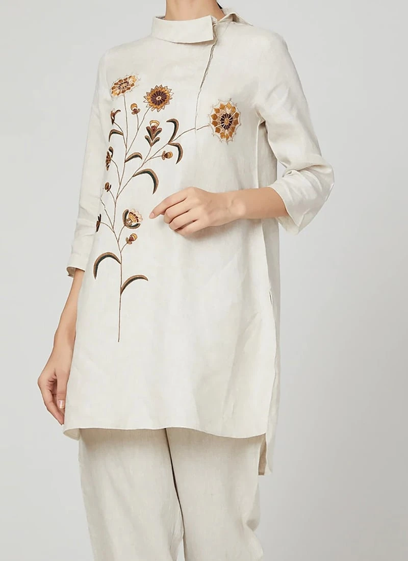 Cream Rayon Slub Kurta Straight Pant Set Work Wear
