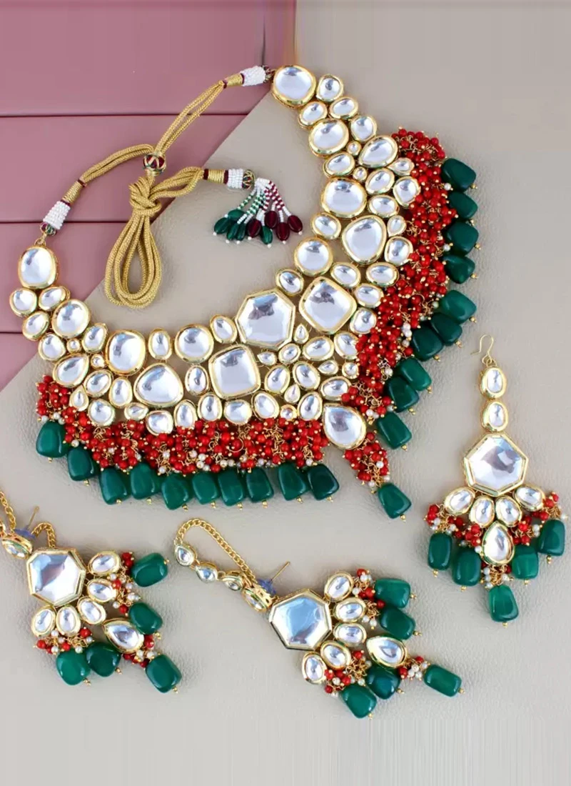 Note:The necklace length is 8.5 X 2 inch, earrings length is 2 inch and maangtikka is 5 inch.