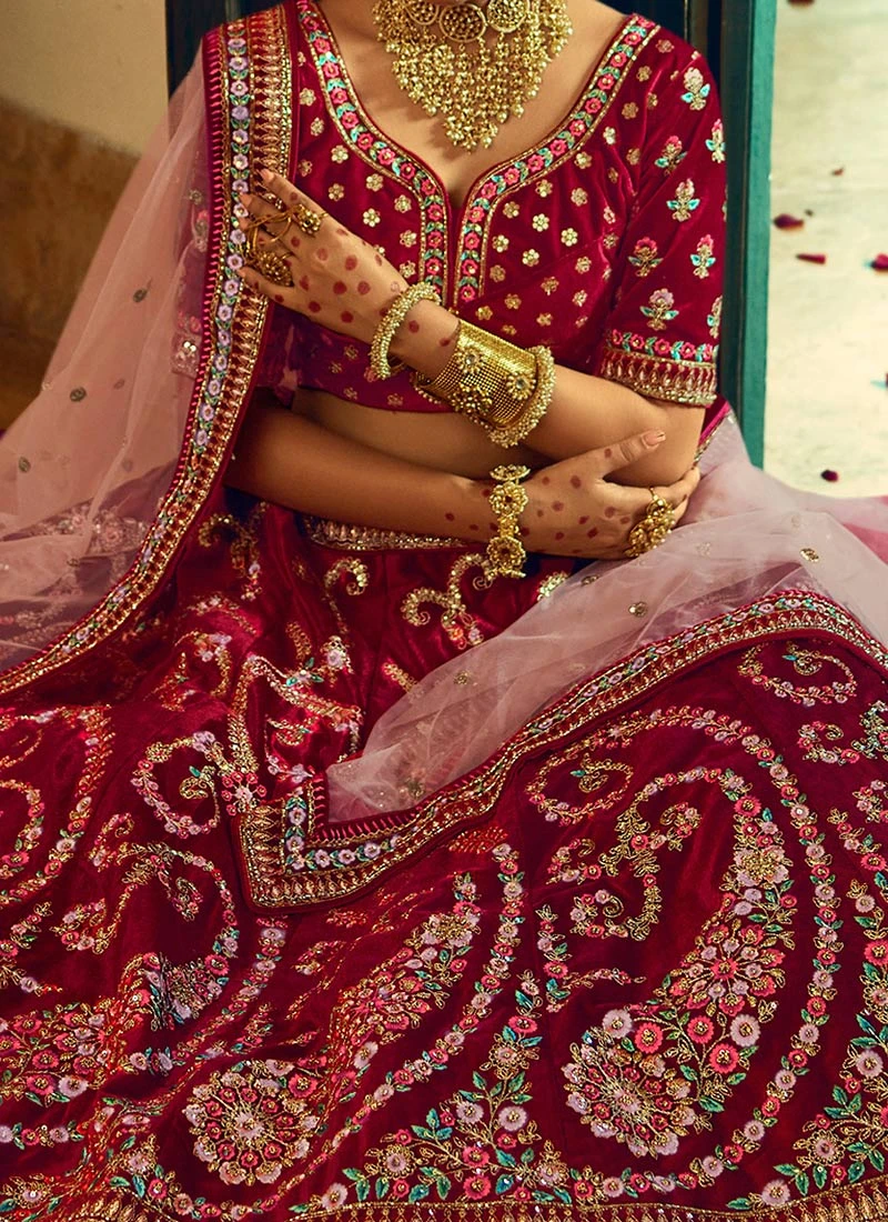 This product consists of semistitched lehenga, choli and dupatta fabric. This can be stitched using the custom tailoring options below. To buy semi-stitched fabric, just choose the unstitched option.