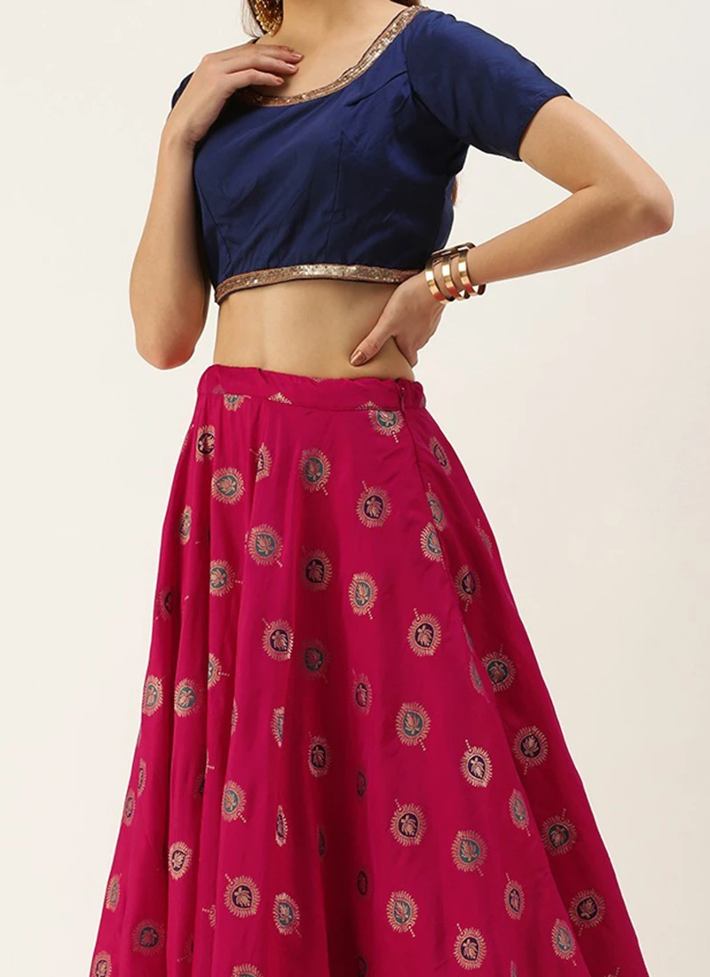 Dark Pink N Blue Taffeta Lehenga Festive Wear
