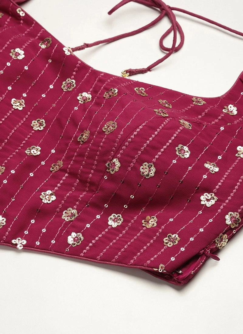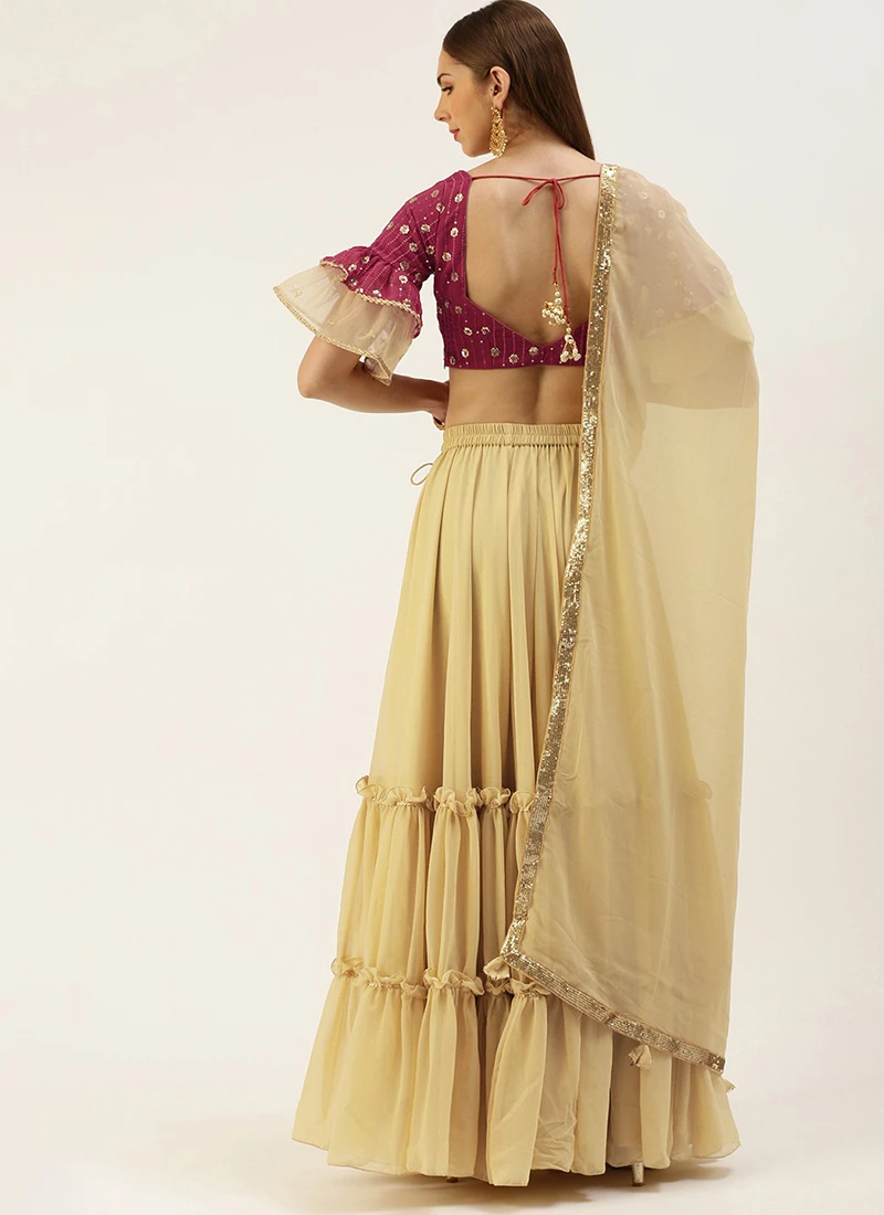 Dark Pink Sequins Embroidered N Beige Georgette Lehenga Festive Wear