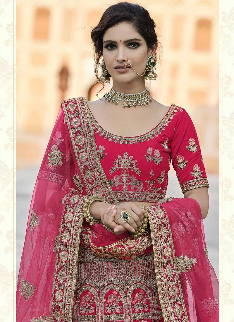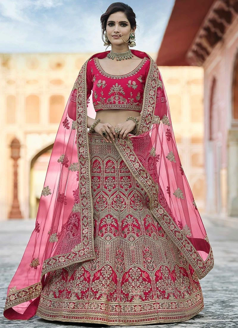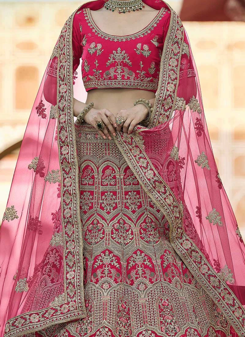 Deep Pink Velvet Embroidered N Stones A Line Lehenga Wedding Wear
