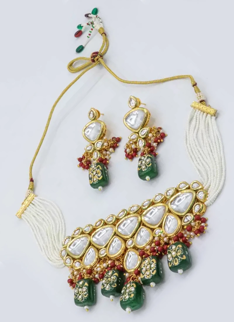 Designer Dark Green Beads Choker Set Party Wear