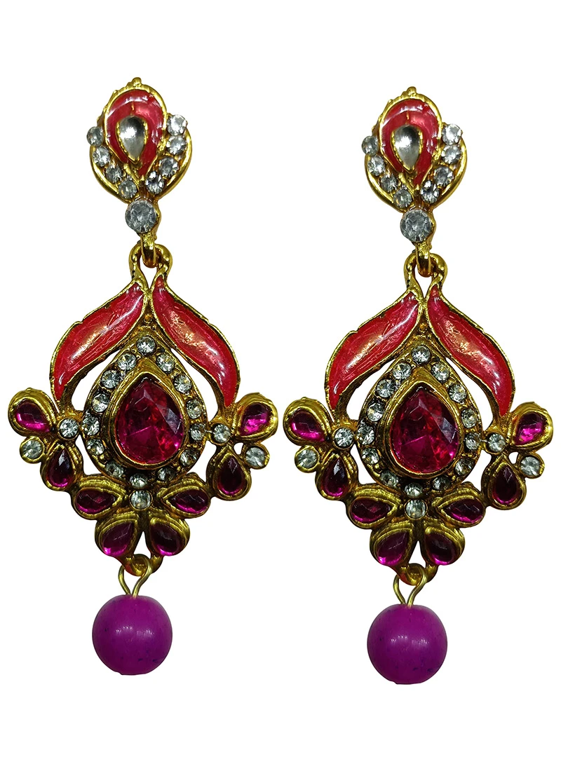 Designer Pink Danglers Earrings Festive Wear