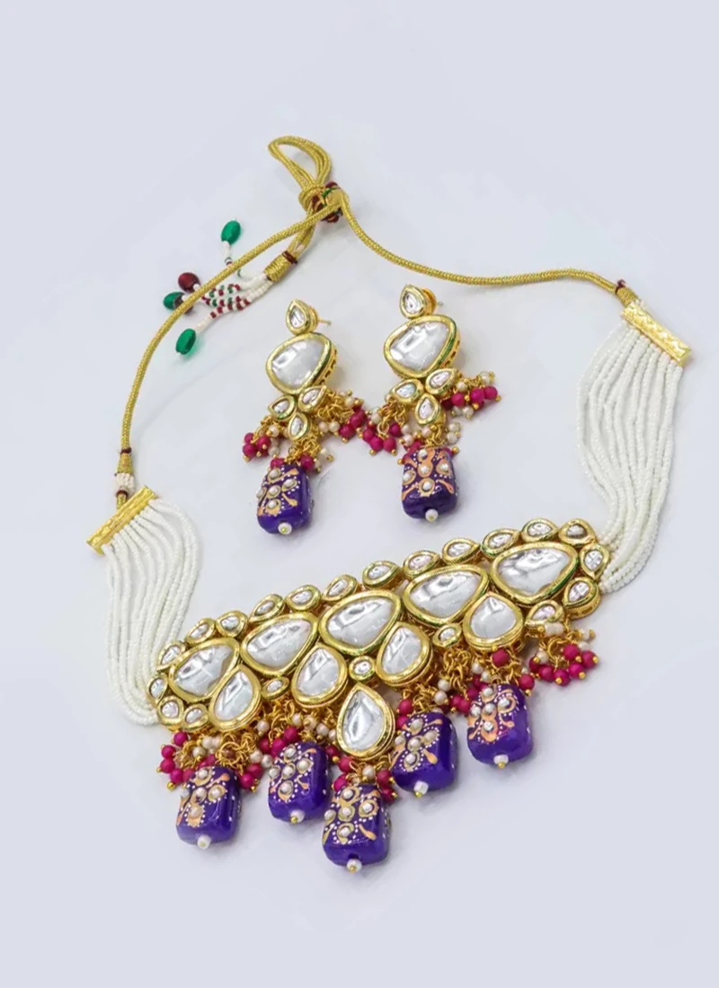 Designer Royal Blue Beads Choker Set Party Wear