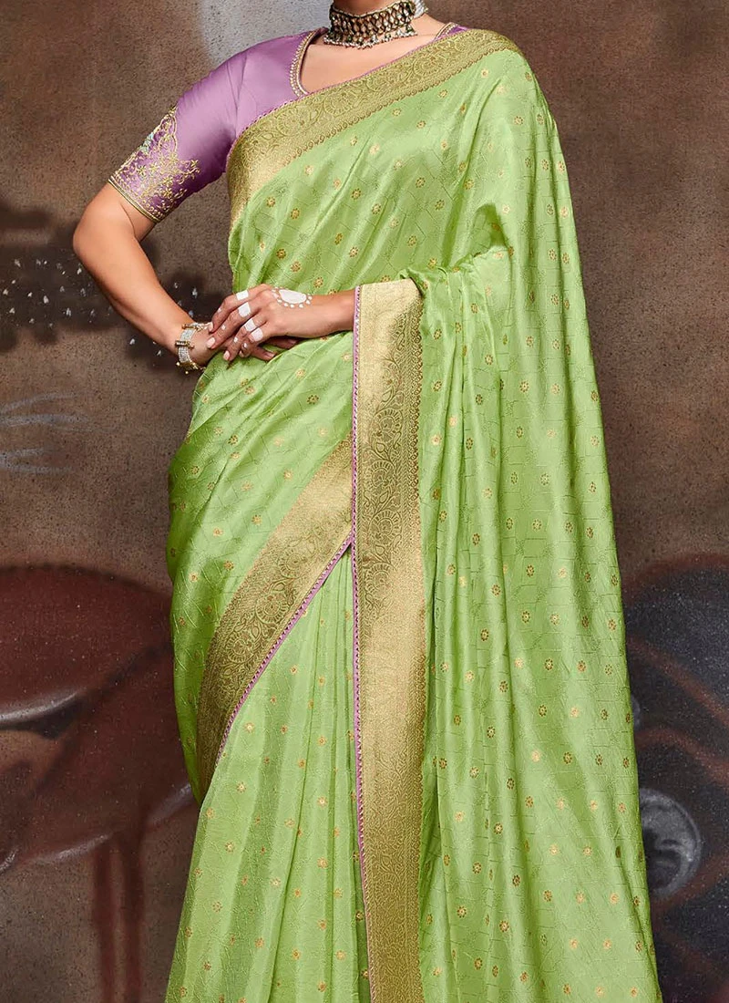 Dola Silk With Jacquard Woven Light Green Color Saree With Attached With Embroidery Blouse Party Wear