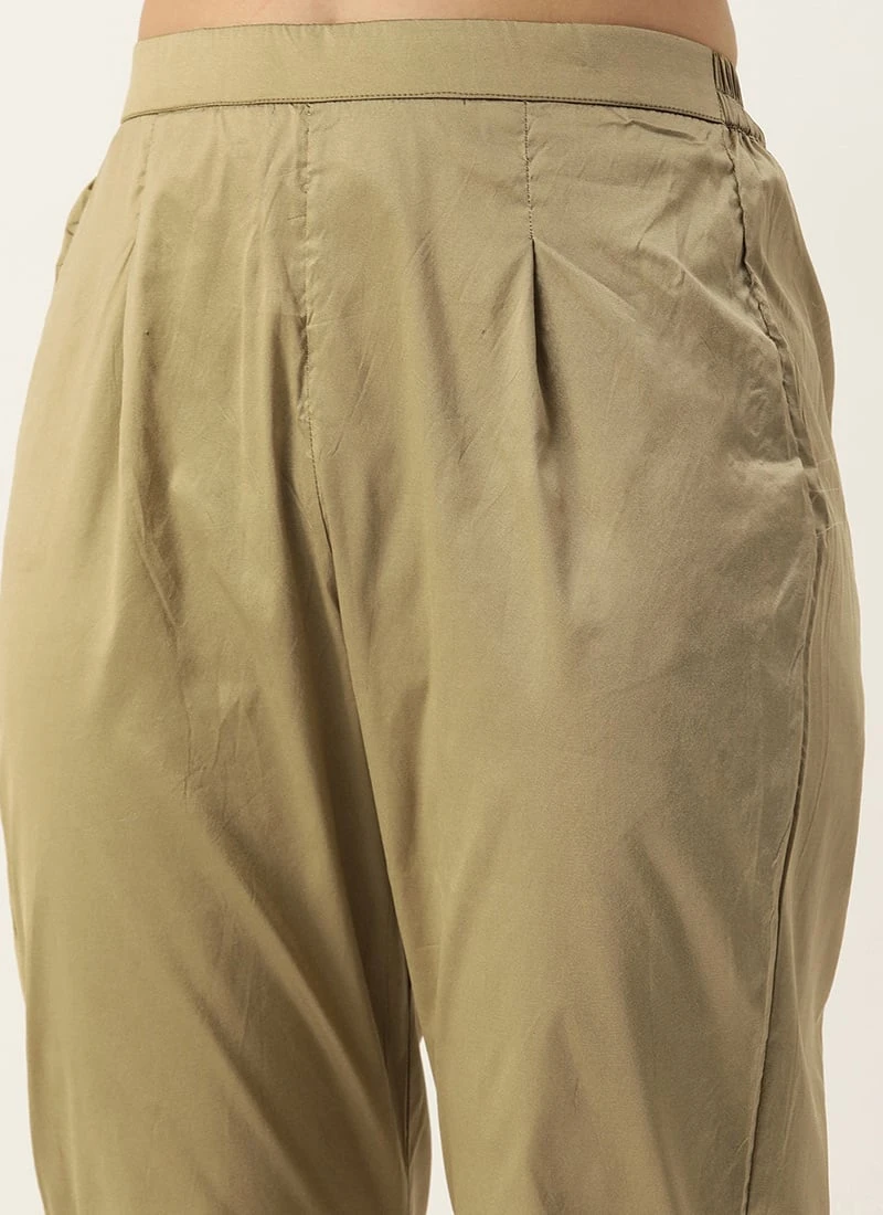 Presenting green embroidered anarkali suit set features, green embroidered georgette yoke with low sweetheart neck front with potli ball in center and a inverted v shape at the natural waist yoke, back is a high boat neck with very low keyhole, full sleeves with puff till elbow and has a beige embroidered net tiered gathers flare till floor length and has trim attached in the flare. The set comes with a beige tafetta narrow straight pant till ankle length and band with elastic waist type. The set has a beige net embroidered dupatta with four sides trim. .