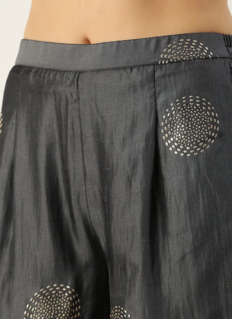 Dupatta From Grey Art Silk Foil Print Gharara Set After Six Wear -ZariGrace Shop Grey Art Silk Foil Print Gharara Set SLBS02301113 rrc1
