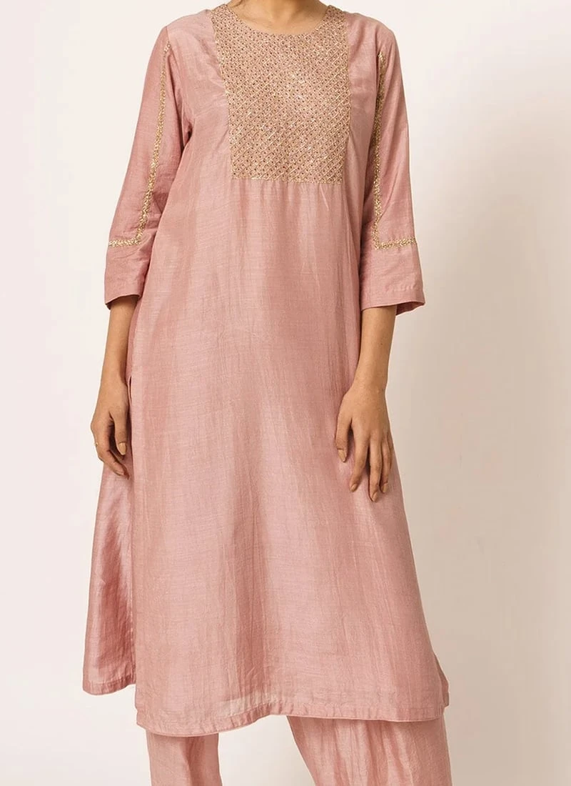 Dusty Pink Pure Chanderi Silk Embroidered Kurta Salwar Set Party Wear