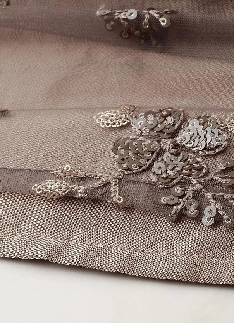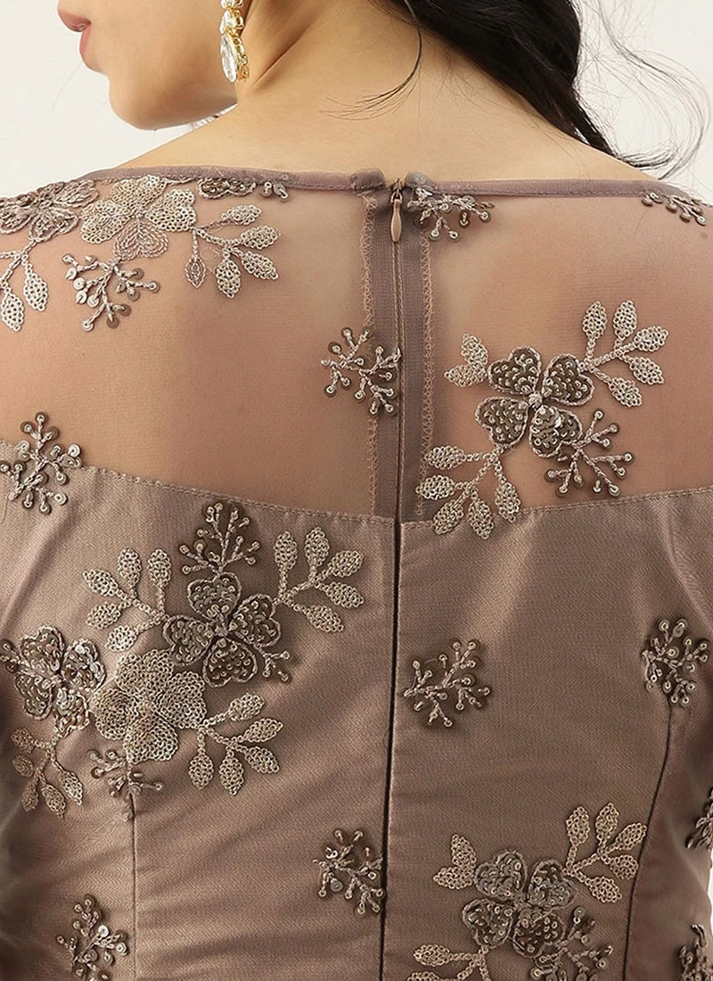 Embroidered Grey Boat Neck Kurti Festive Wear