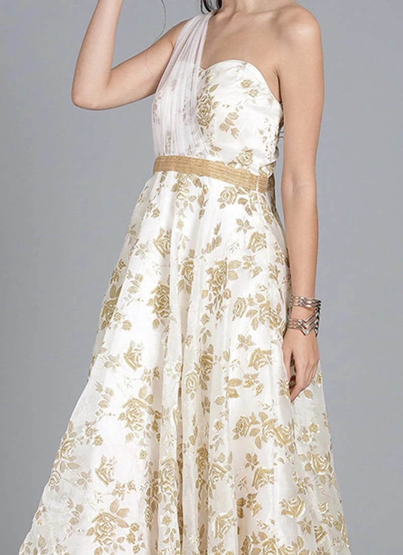 Ethnovog White One Shoulder Gown Party Wear -ZariGrace Shop Bollywood Vogue Customised White One Shoulder Gown IWBV01903799 rrc2