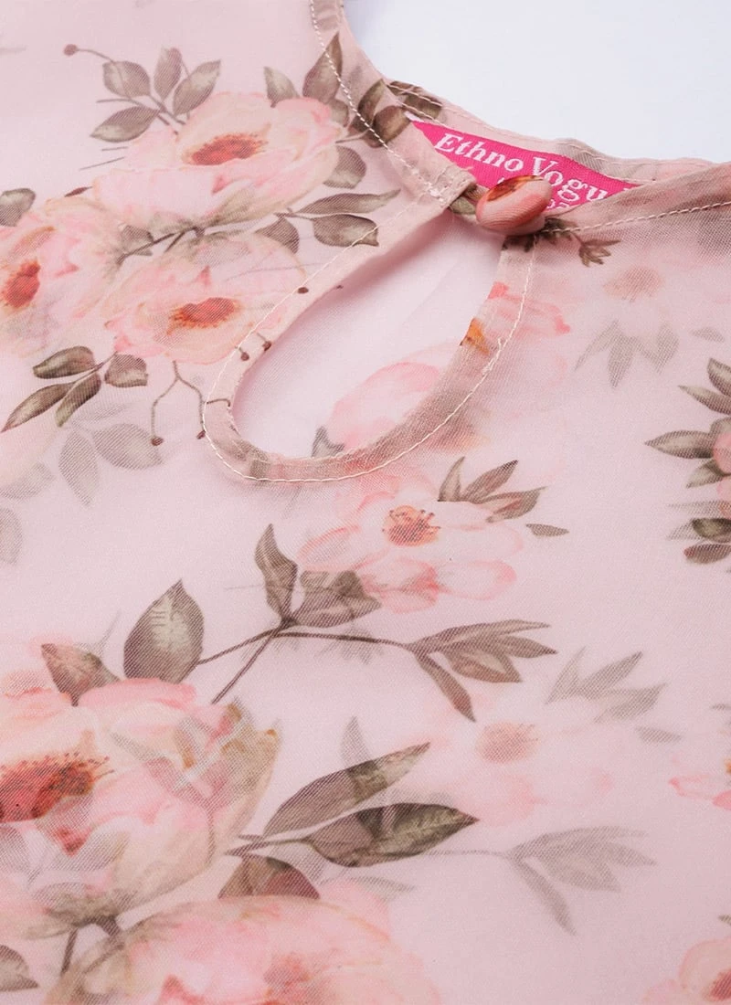 Floral Printed Organza Kaftan Dress After Six Wear Party Wear