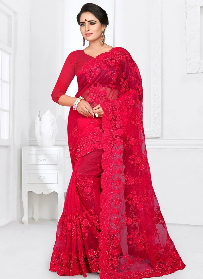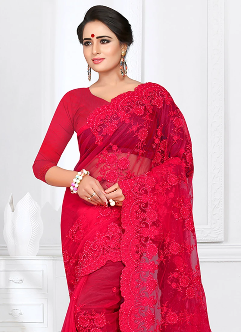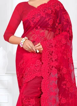 Fuschia Pink Embroidered Saree Party Wear