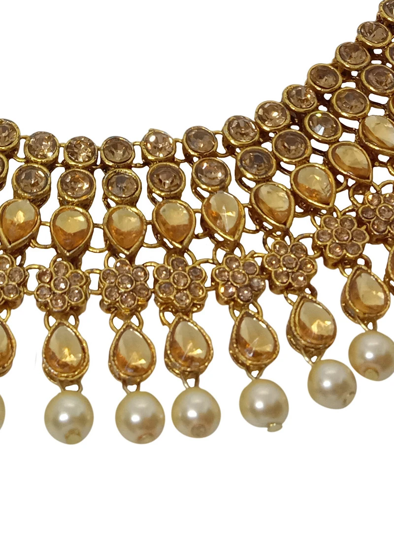 Gold Alloy Kundan Necklace Set With Earrings N Mangtika Party Wear