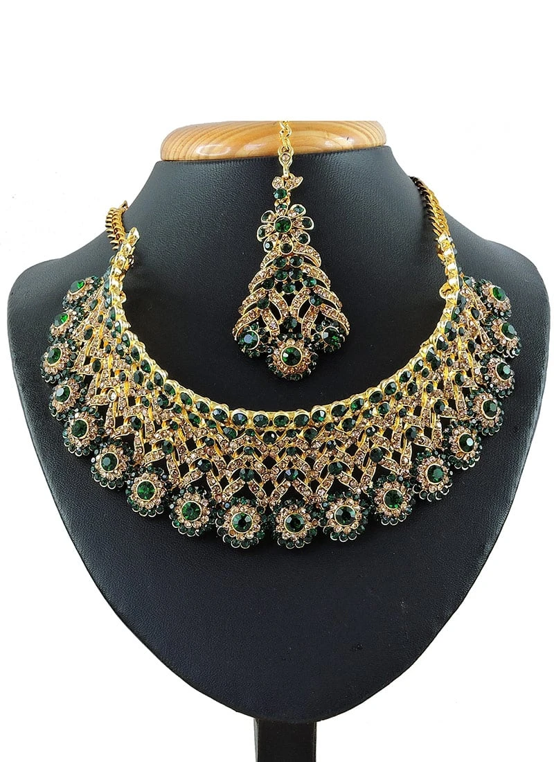 Gold N Green Necklace Set Wedding Wear -ZariGrace Shop gold n green necklace set jymmkns5625b u