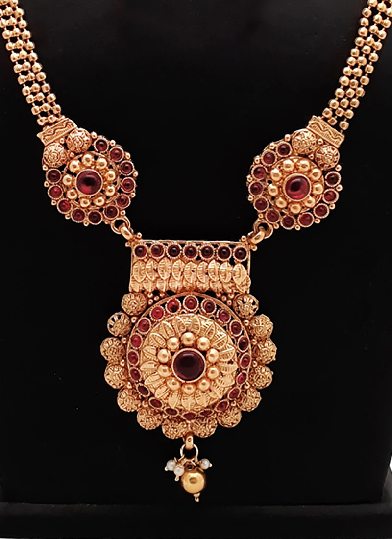 Gold N Maroon Necklace Set Festive Wear