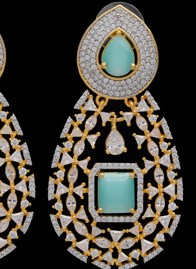 Embark on a journey of elegance and grace with our exquisite Gold N Sea Green Stones Alloy Danglers. we are dedicated to providing you with the finest fashion accessories and these stunning danglers are a true embodiment of our commitment to timeless allure and impeccable craftsmanship. Our Gold N Sea Green Stones Alloy Danglers are meticulously crafted from highquality alloy materials ensuring a perfect blend of durability and lightweight comfort. These danglers are designed to be worn all day or all night without any discomfort.These danglers feature an artistic design that seamlessly combines the splendor of gold with the tranquil beauty of sea green stones. The result is a pair of earrings that exude sophistication and charm effortlessly enhancing your fashion statement. The centerpiece of these danglers is the mesmerizing sea green stones thoughtfully set within the golden framework. These stones gracefully capture and reflect light creating a captivating interplay of colors that will undoubtedly turn heads and ignite conversations. Whether youre attending a formal gala a beachside wedding or a casual gathering with friends these danglers are the perfect accessory to elevate your look. Their versatile style complements a wide range of outfits from traditional ethnic attire to contemporary Western fashion. We understand the importance of a secure and comfortable closure. These danglers feature a reliable hook closure ensuring they stay securely in place throughout your day or evening. Searching for a thoughtful gift for a loved one Our Gold N Sea Green Stones Alloy Danglers come beautifully packaged making them an ideal choice for birthdays anniversaries weddings or any special occasion. We firmly believe that luxury should be accessible to all and these Gold N Sea Green Stones Alloy Danglers embody this philosophy. You can indulge in premium quality and exceptional design without exceeding your budget. Make a statement of serenade and elegance with our Gold N Sea Green Stones Alloy Danglers. Whether youre gracing a tropical getaway adding a touch of coastal charm to your festive attire or simply expressing your personal style these earrings will make you shine like a true fashion icon. Dont miss the opportunity to own a piece of jewellery that seamlessly combines the splendor of gold with the tranquil beauty of sea green stones.Elevate your jewellery collection today with these extraordinary danglers and discover.