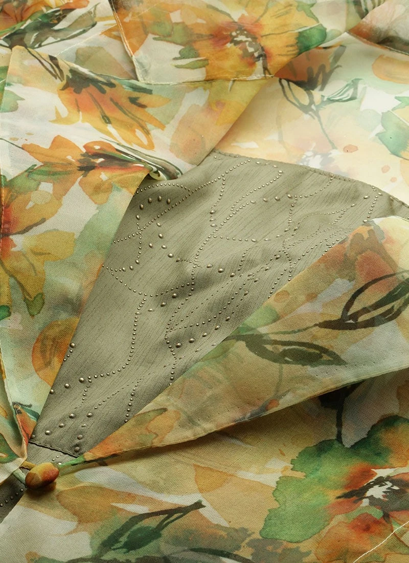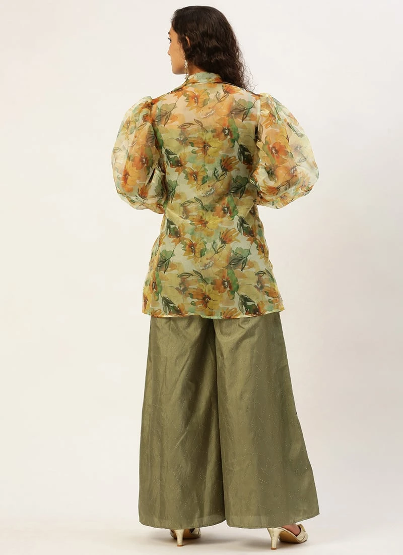 Green Art Silk Jumpsuit N Yellow Organza Jacket After Six Wear
